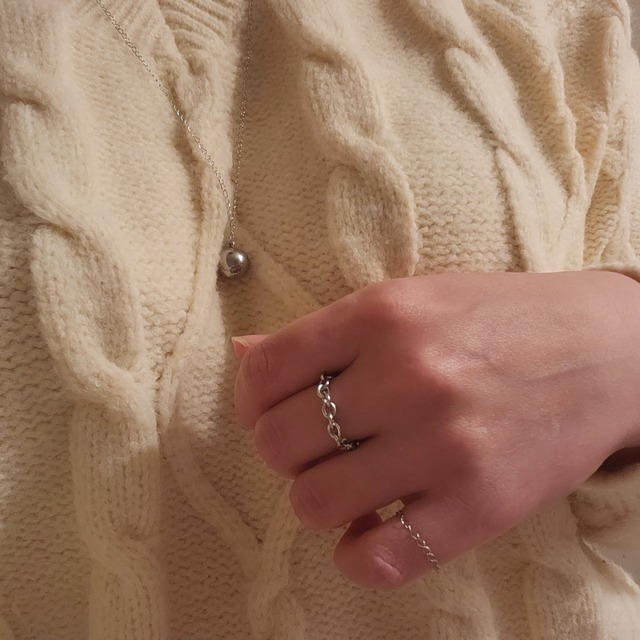 ---COMMENT--- 手元を一気におしゃれに見せてくれるチェーンリング。 A,Bタイプのセットになります。 ※お好みのサイズでお作り致します。 ただし、チェーンの切れ目によっては若干サイズ差異あり。 ご注文時に必ず備考欄にてサイズをご記入ください。 記入例) A :7号、B:5号 希望 ---MATERIAL--- すべてサージカルステンレス ※金属アレルギー対応のものを使用しておりますが、個人差があり 必ずアレルギー反応が出ないとお約束できるものではございません。 ---SIZE--- 注文時備考欄にてお客様ご記入要。 上記【COMMENT】にて記入例あり。 ---ATTENTION--- ※ご購入前に必ず【Read me】をお読みください。