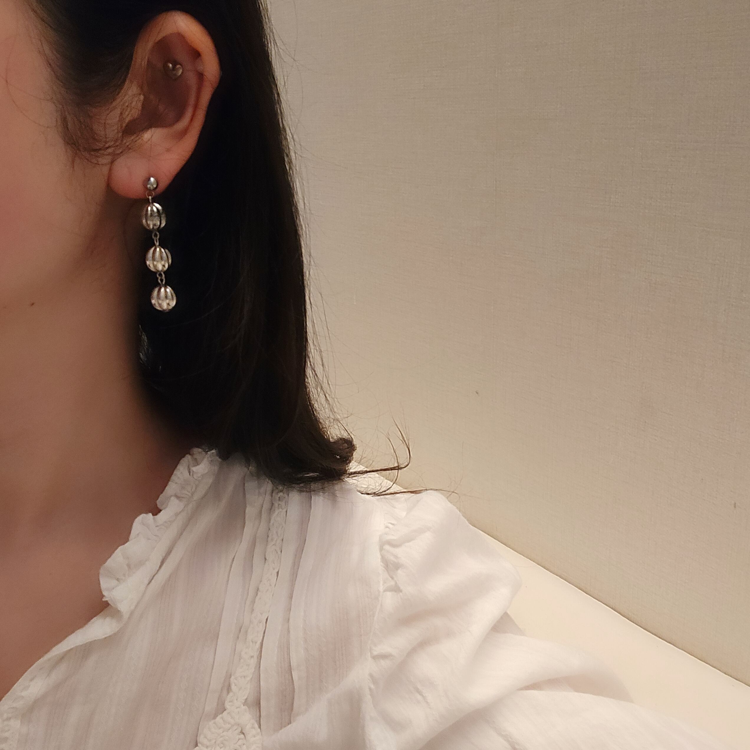 アンティーク風でおしゃれな3連ピアス。