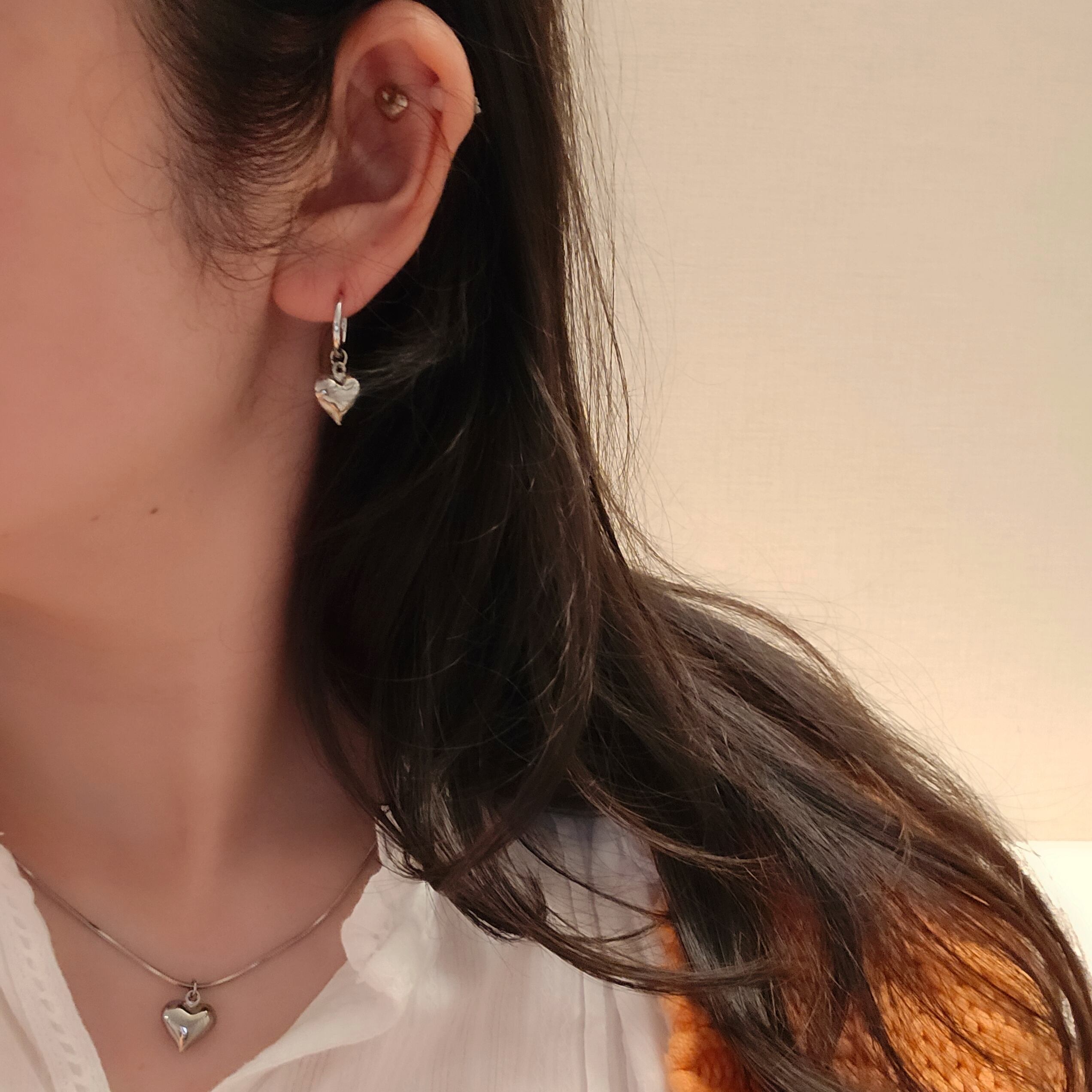 ぷくっとしたハートモチーフがかわいいピアス。