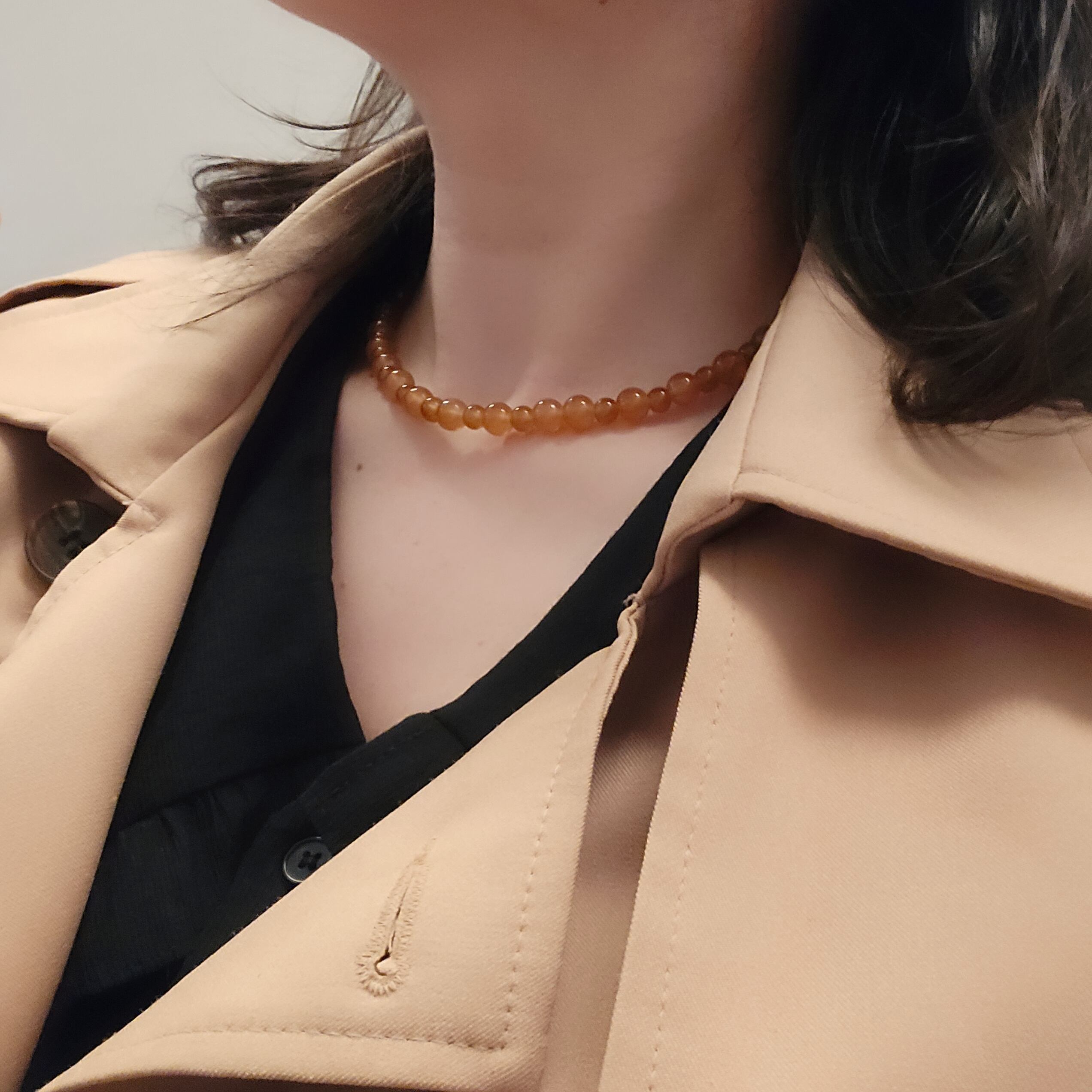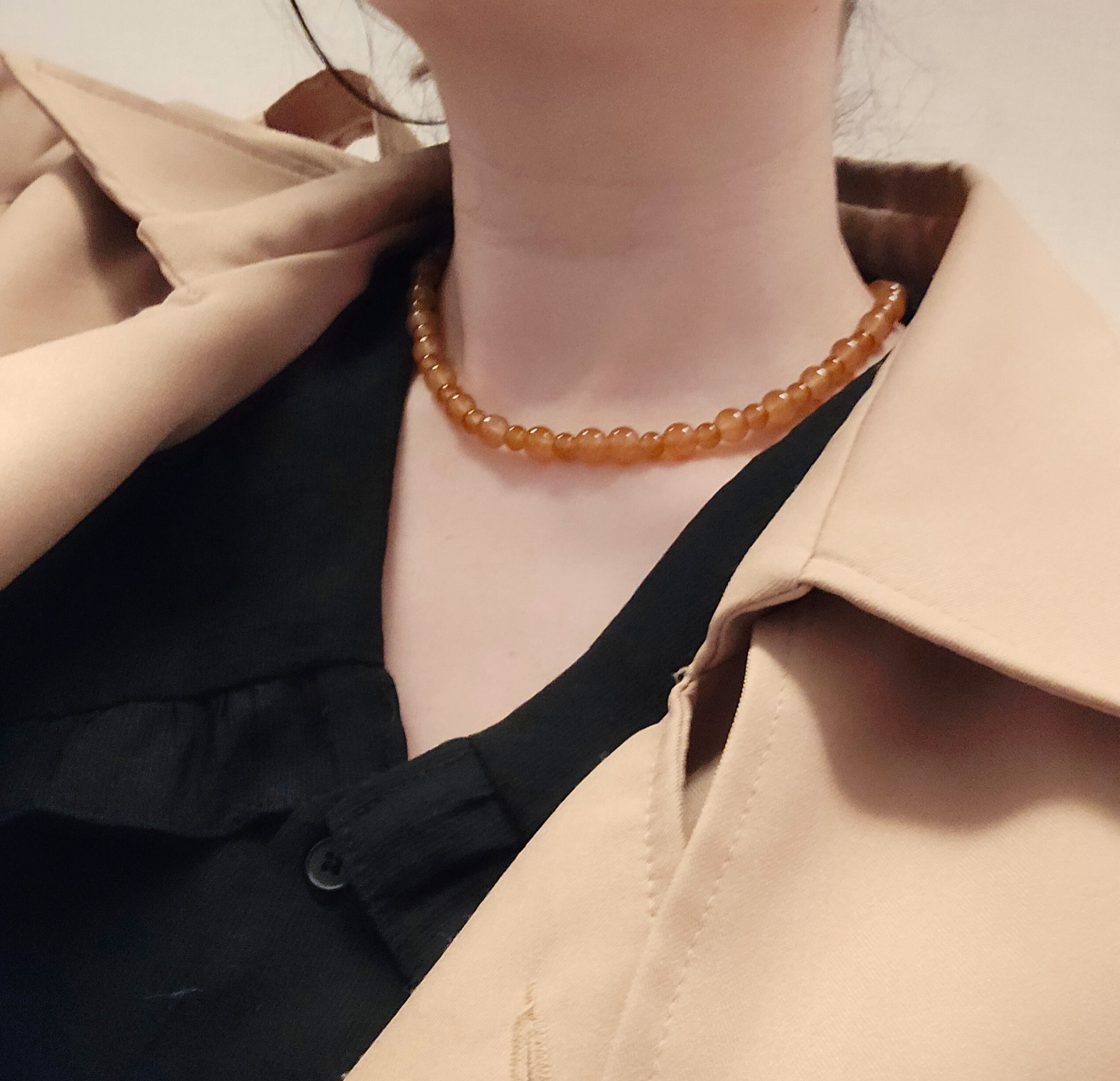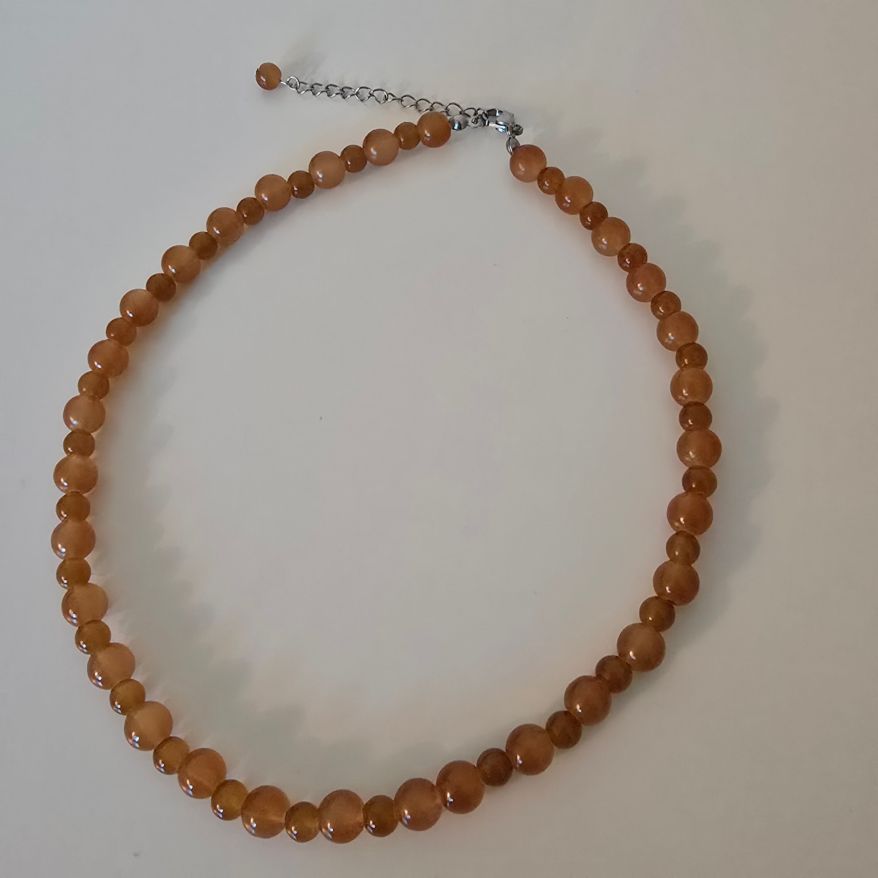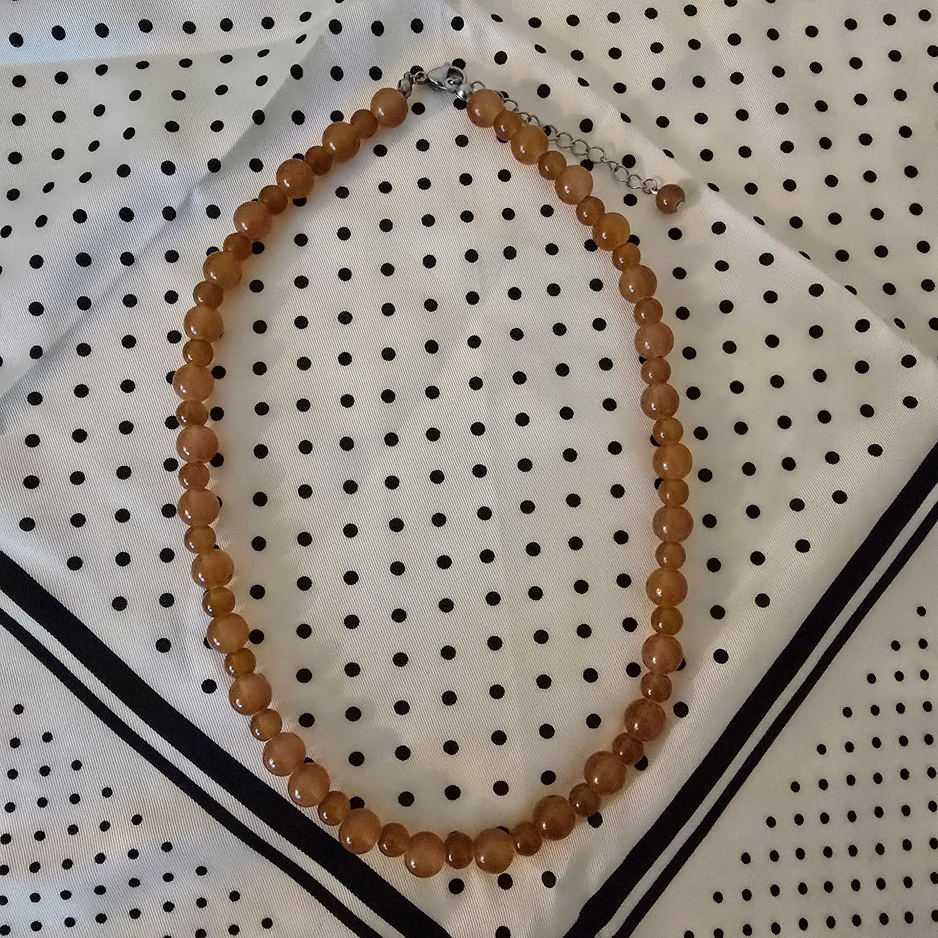 大小交互に並ぶ透き通るようなブラウンのビーズがおしゃれなネックレス。