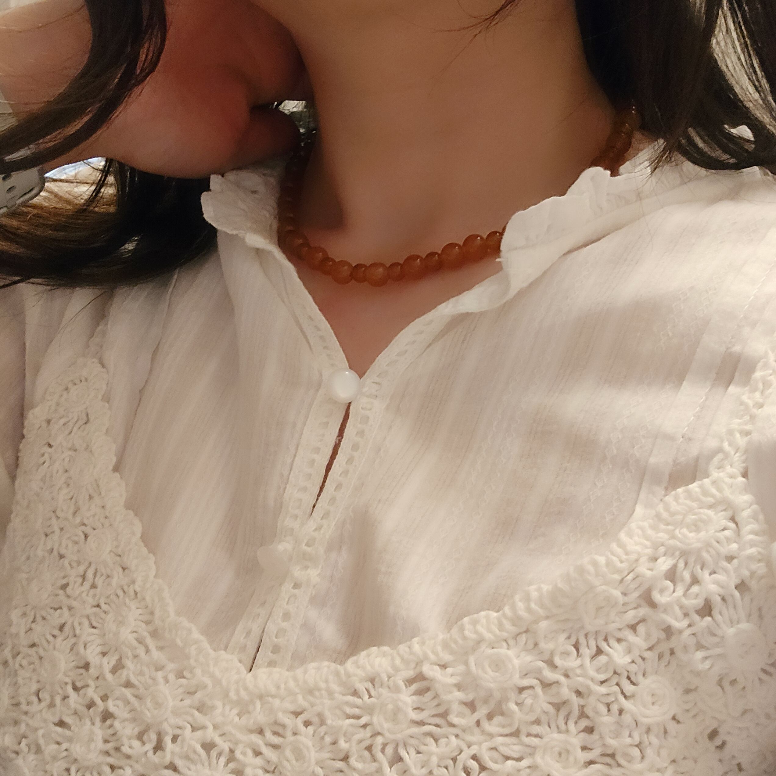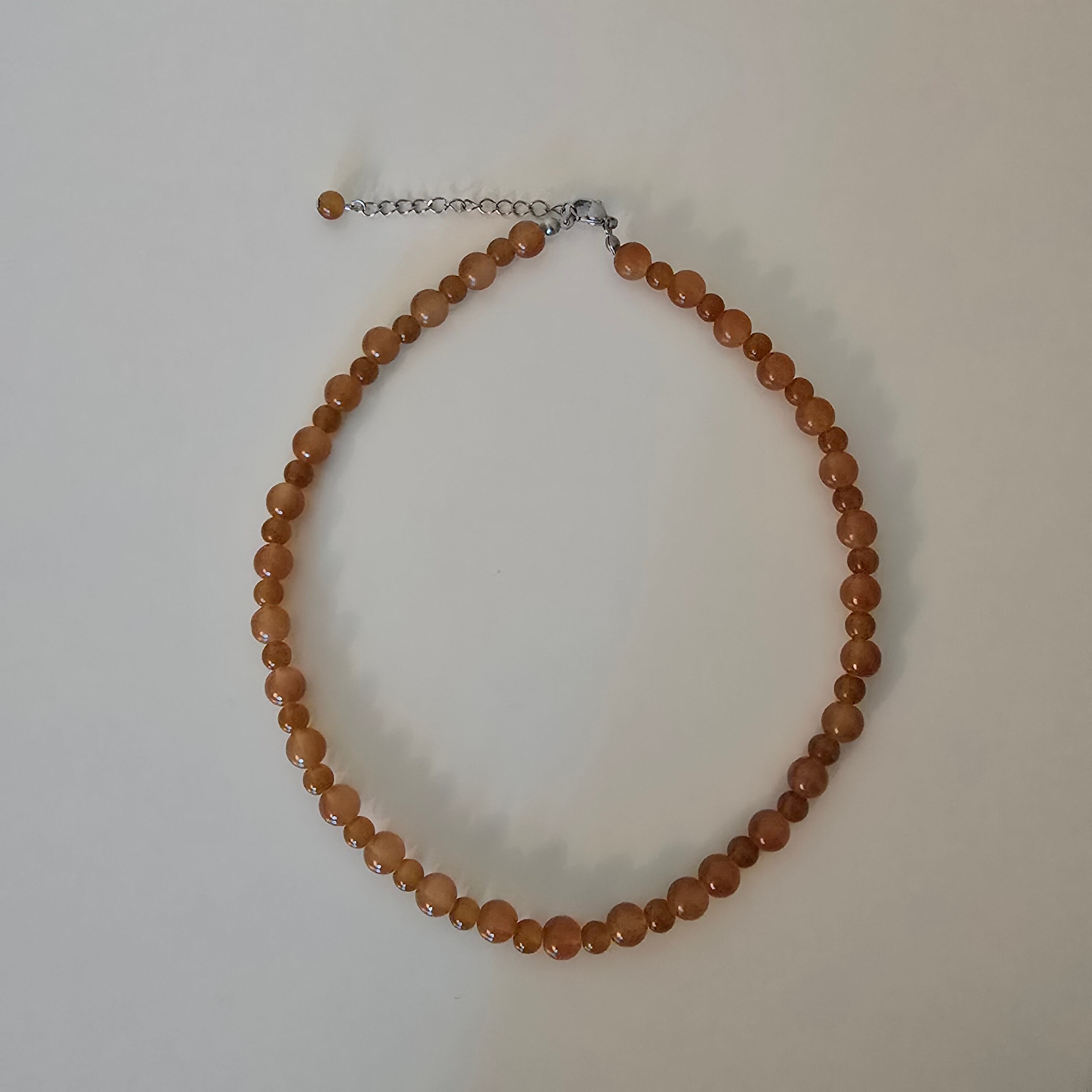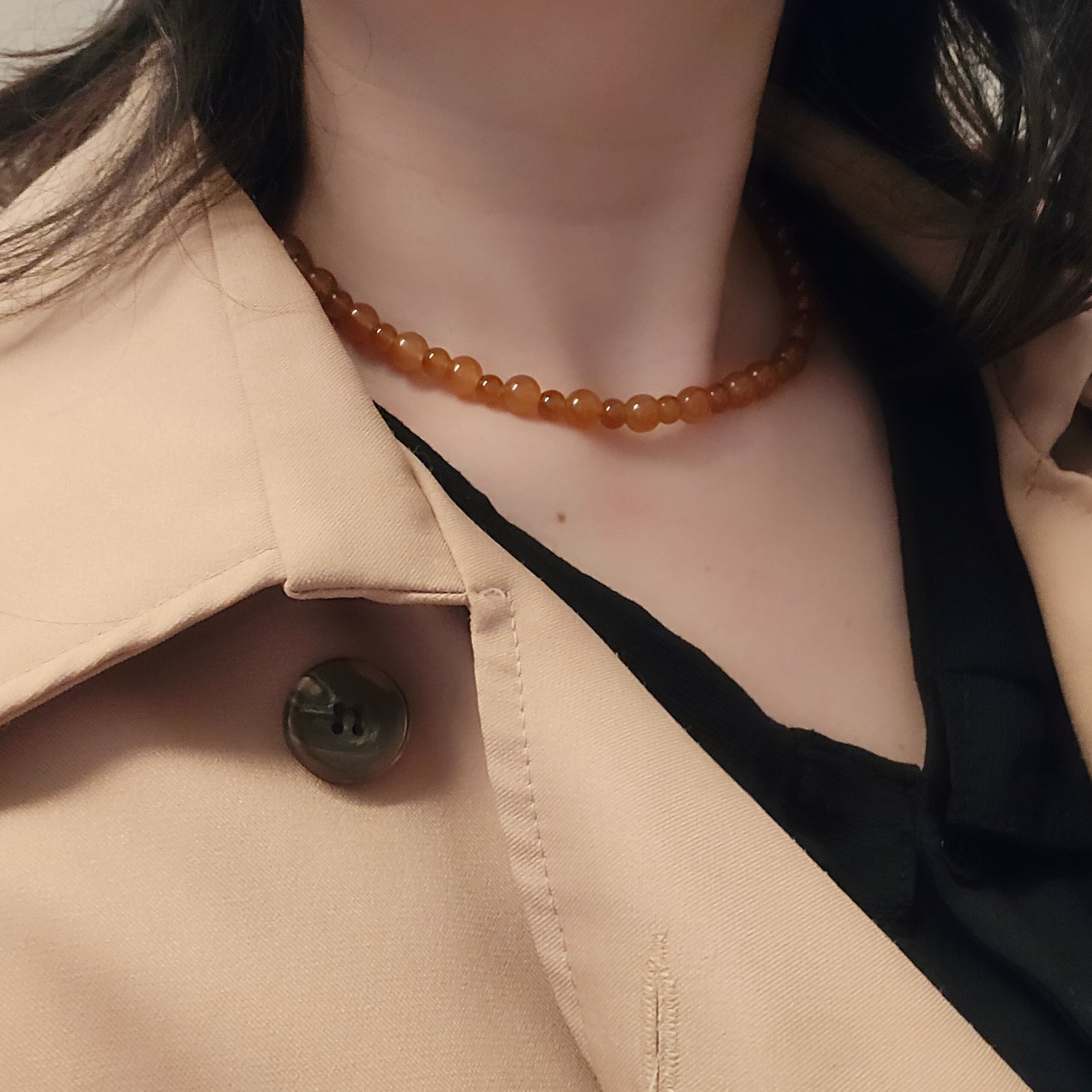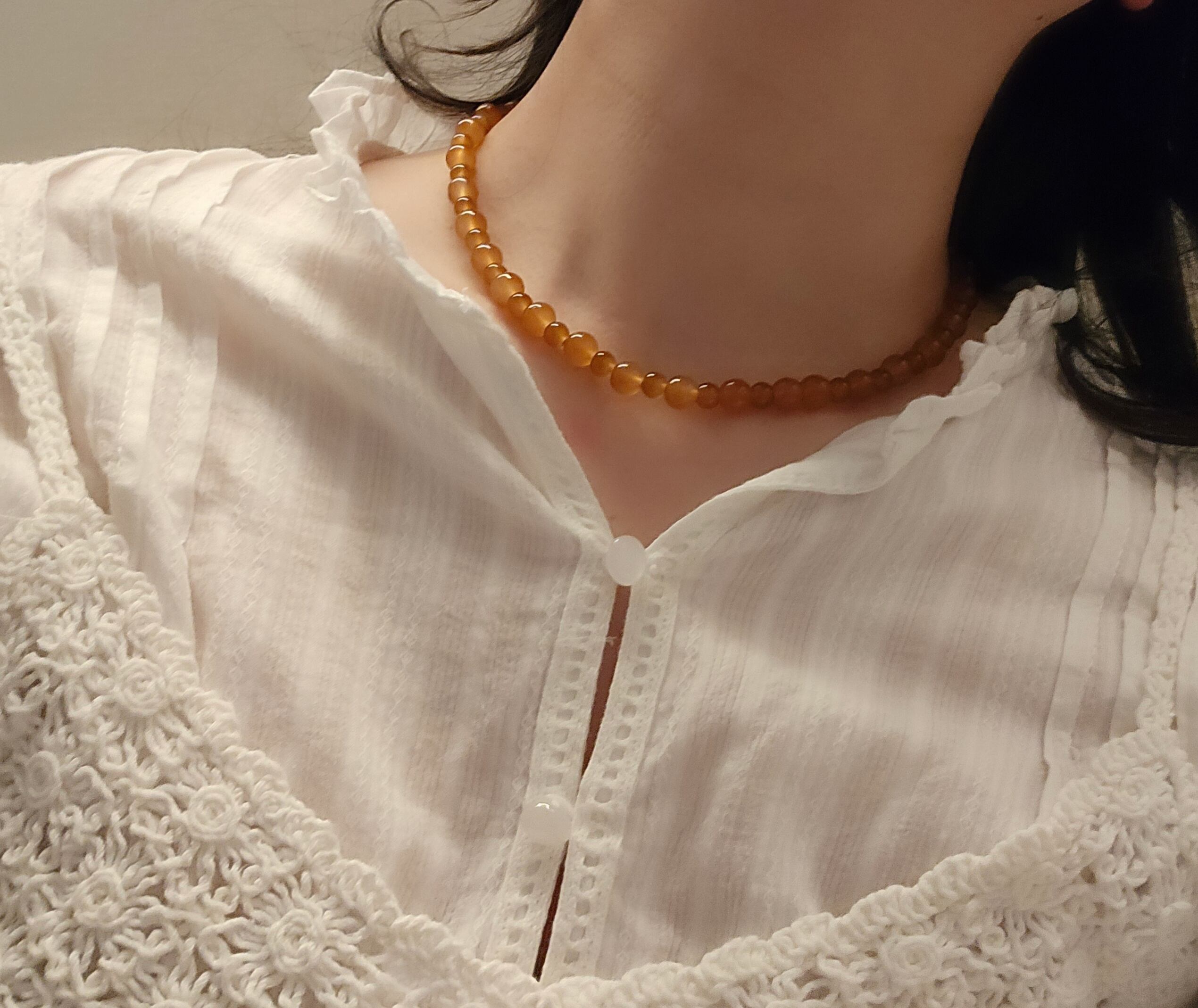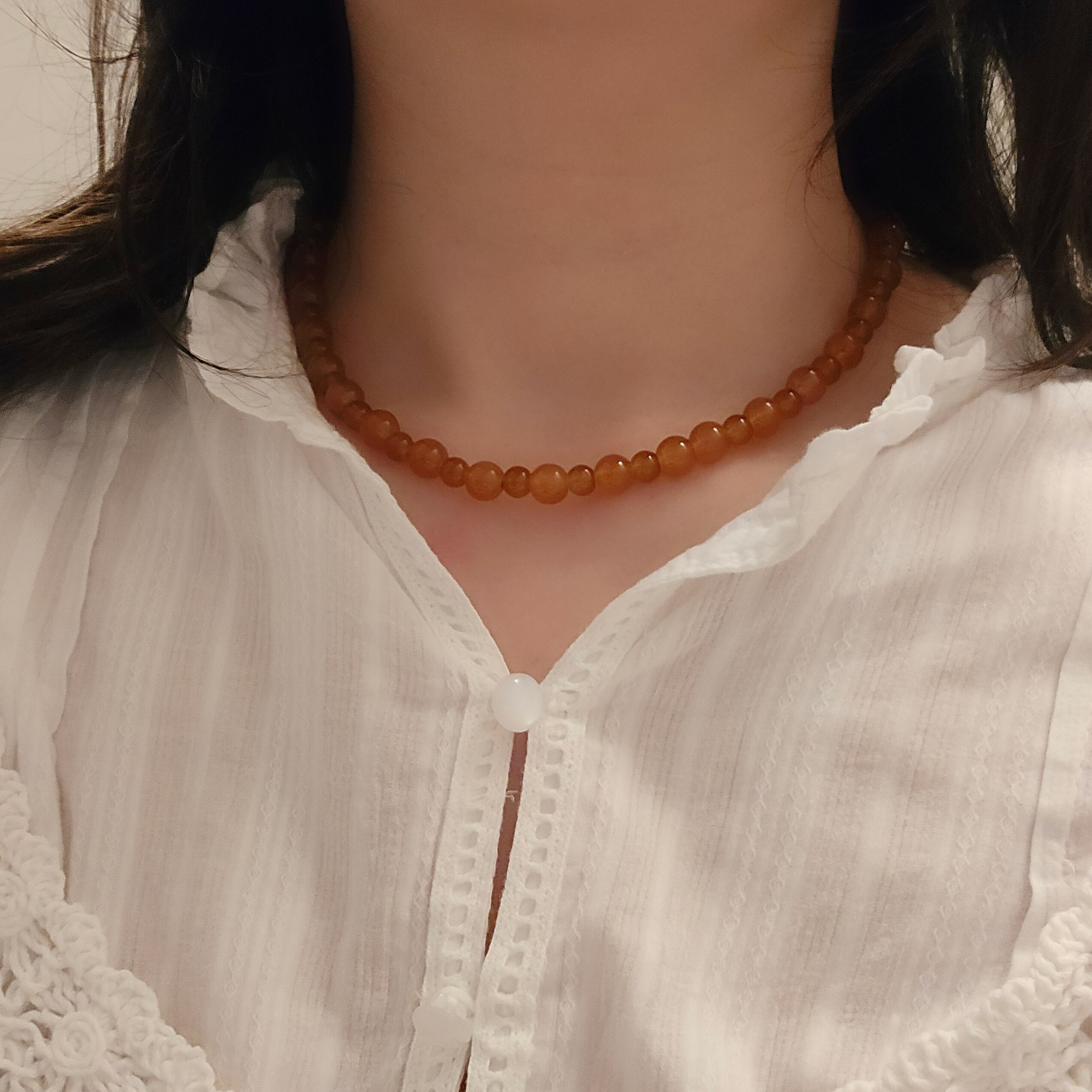 大小交互に並ぶ透き通るようなブラウンのビーズがおしゃれなネックレス。