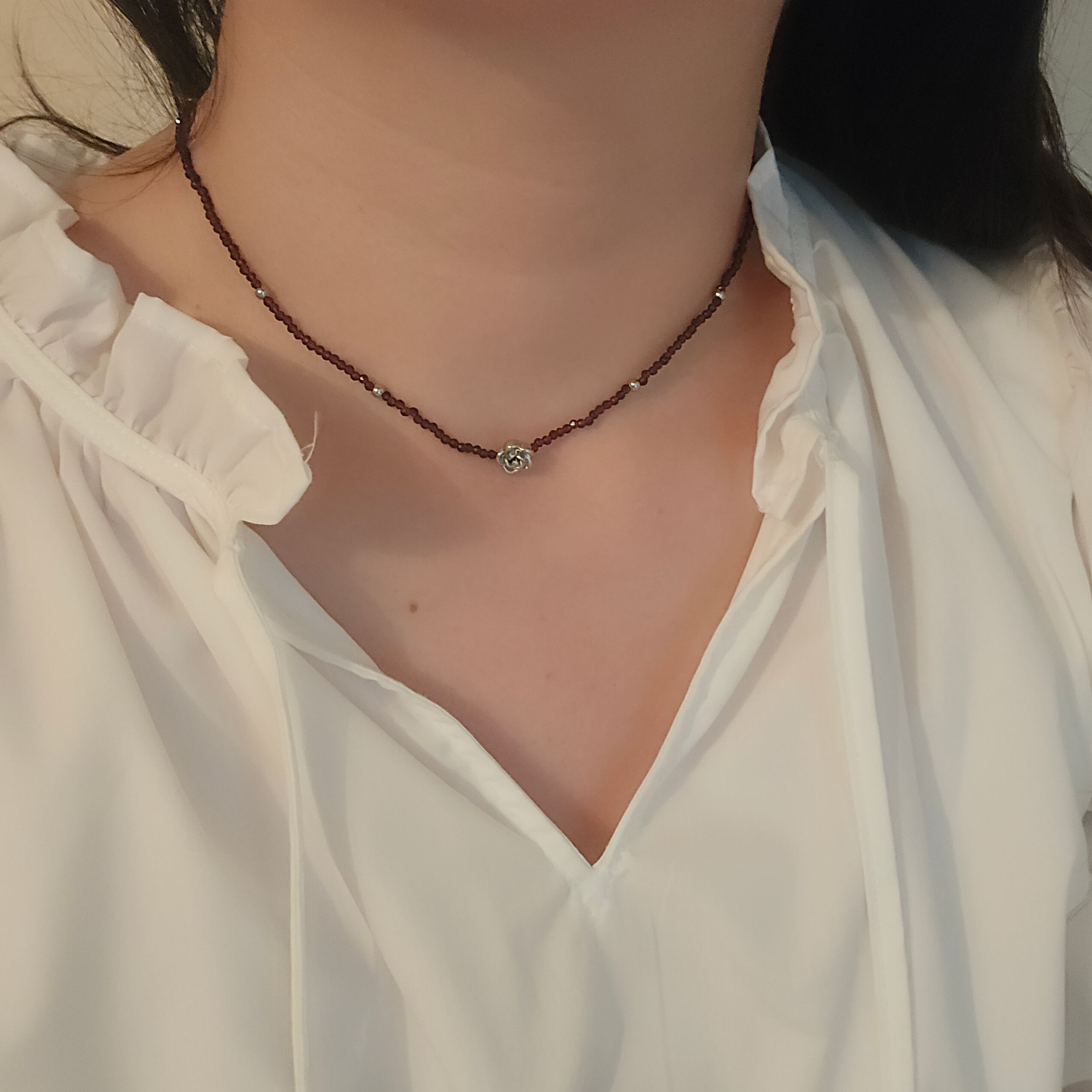 ミニお花モチーフがポイントのチョーカー風ネックレス。
