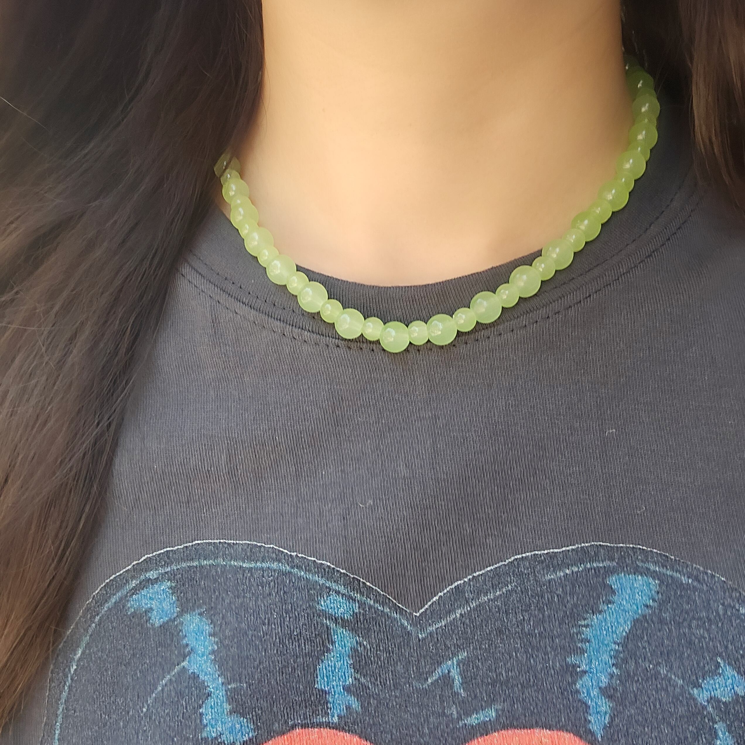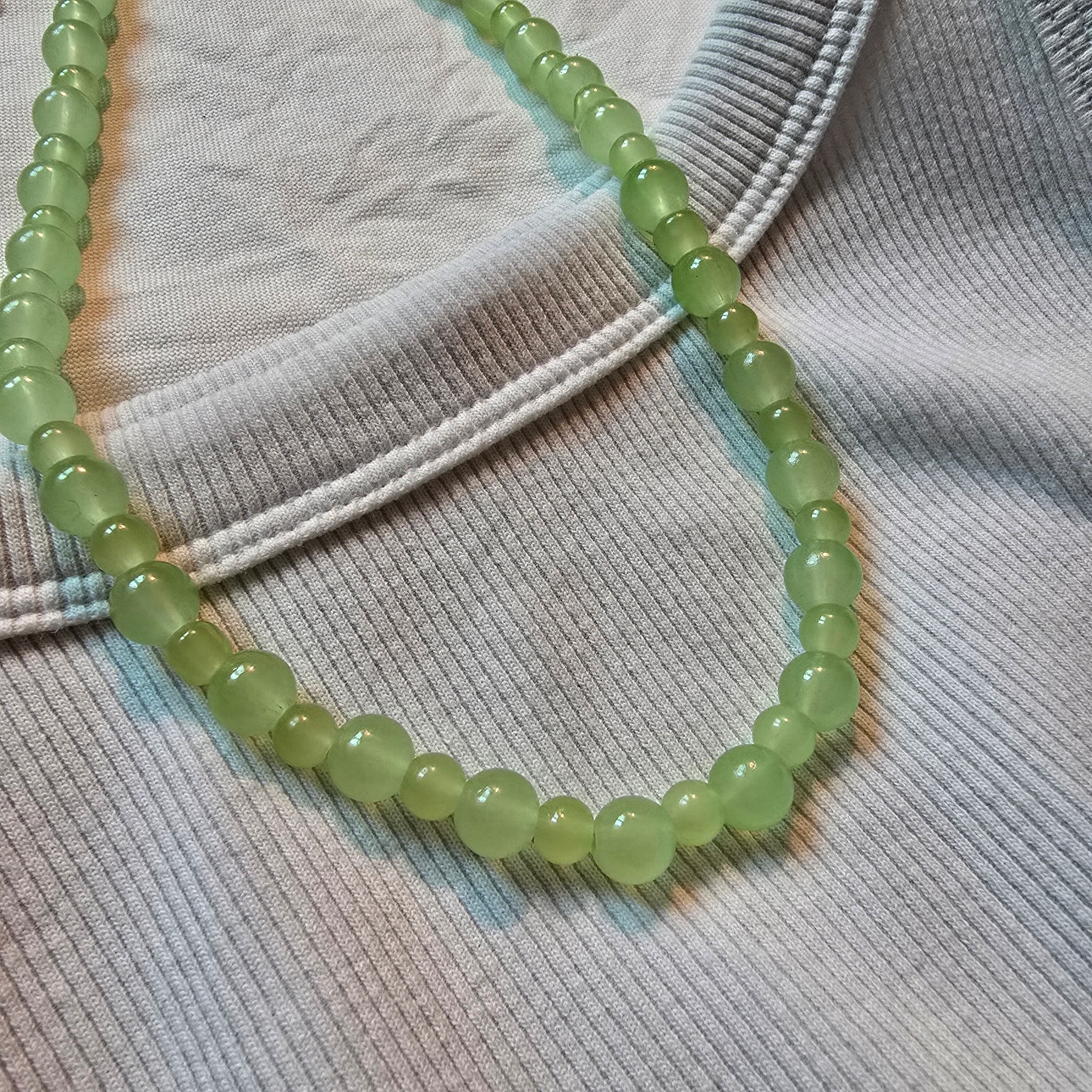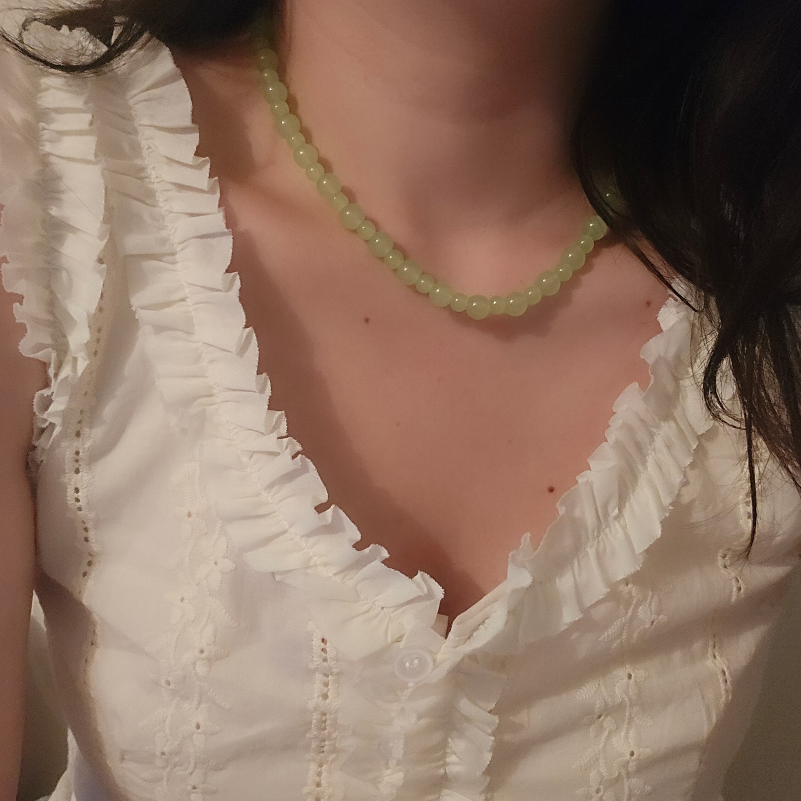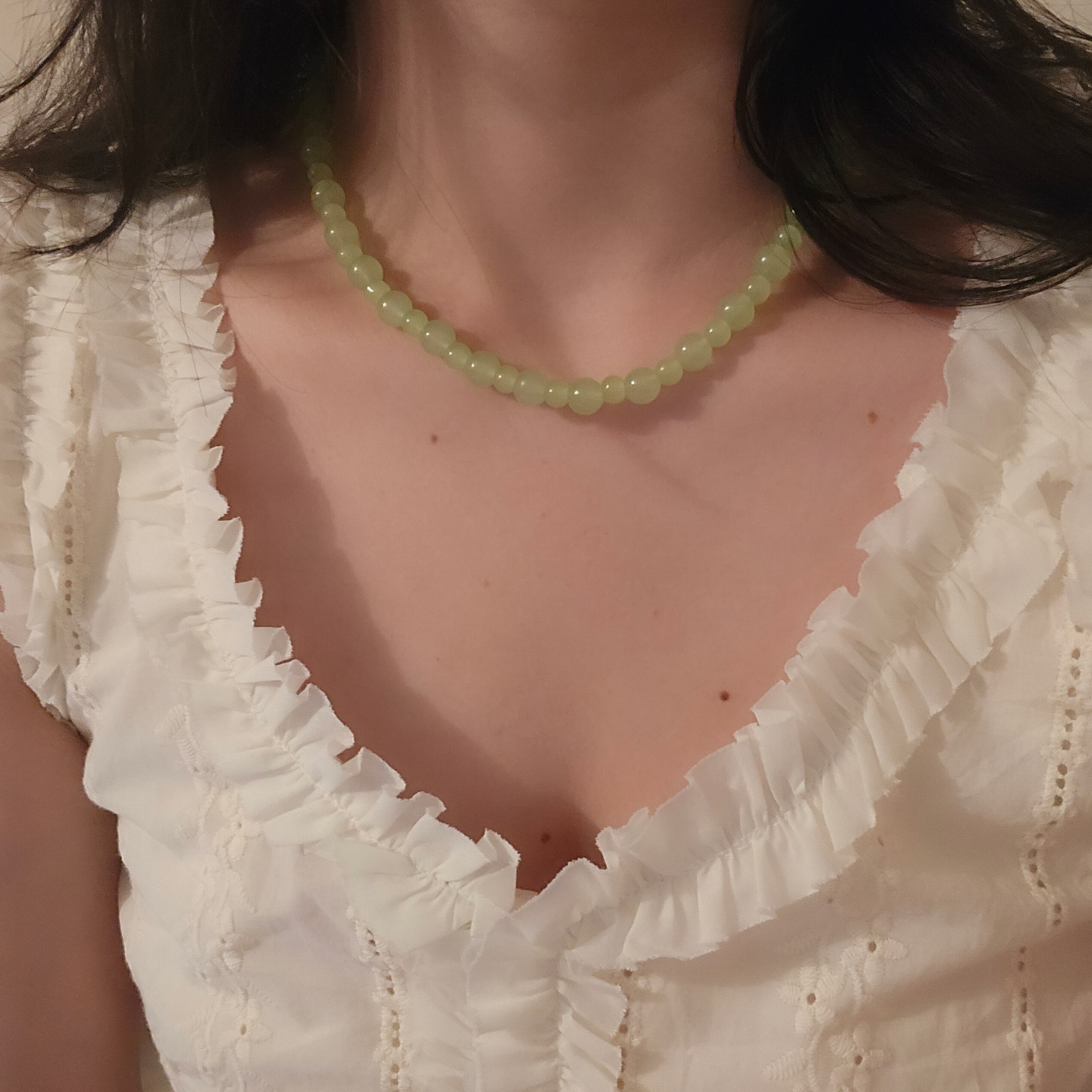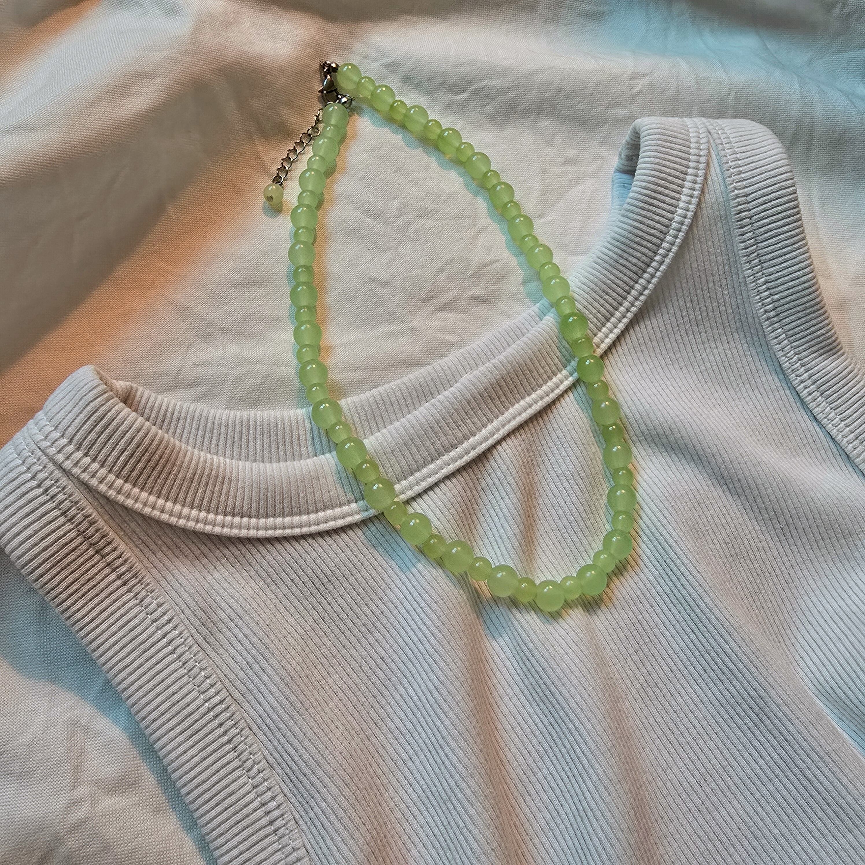 大小交互に並ぶ透き通るようなビーズがおしゃれなネックレス。