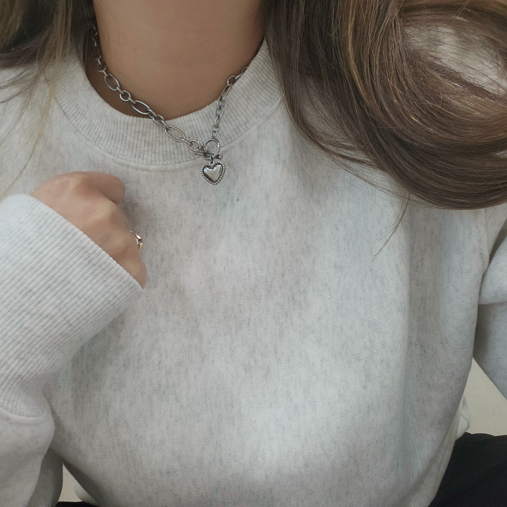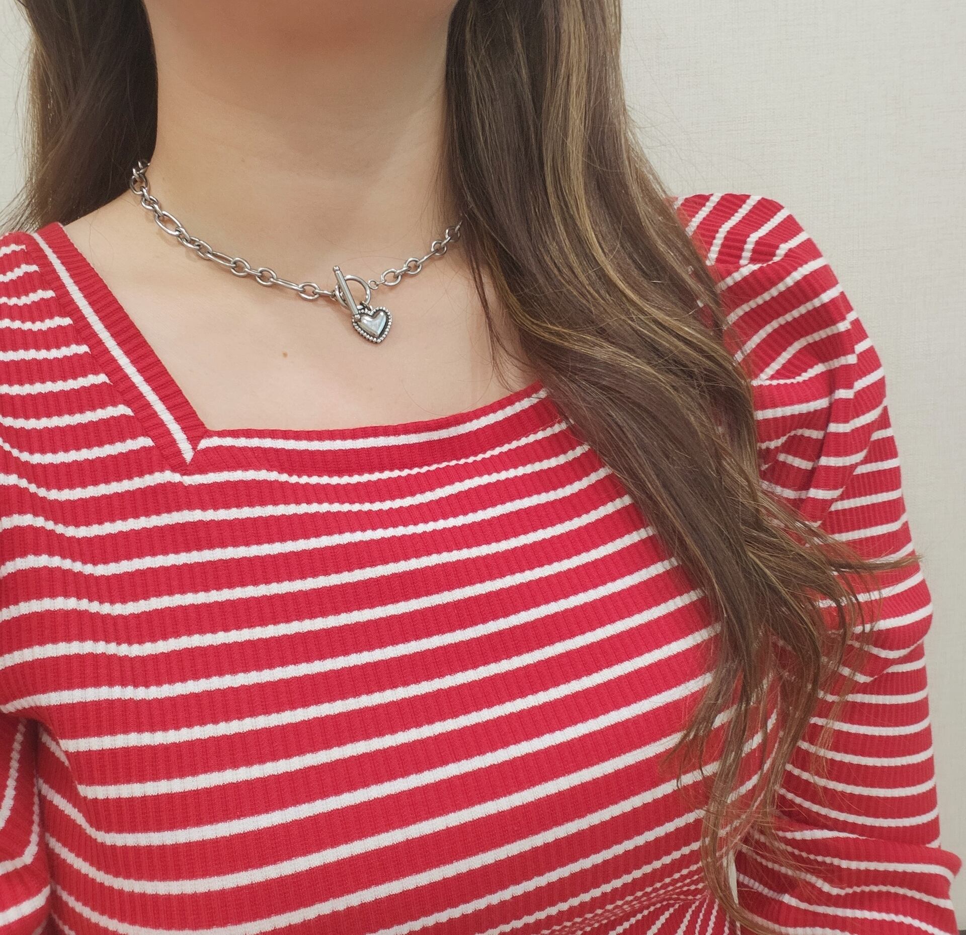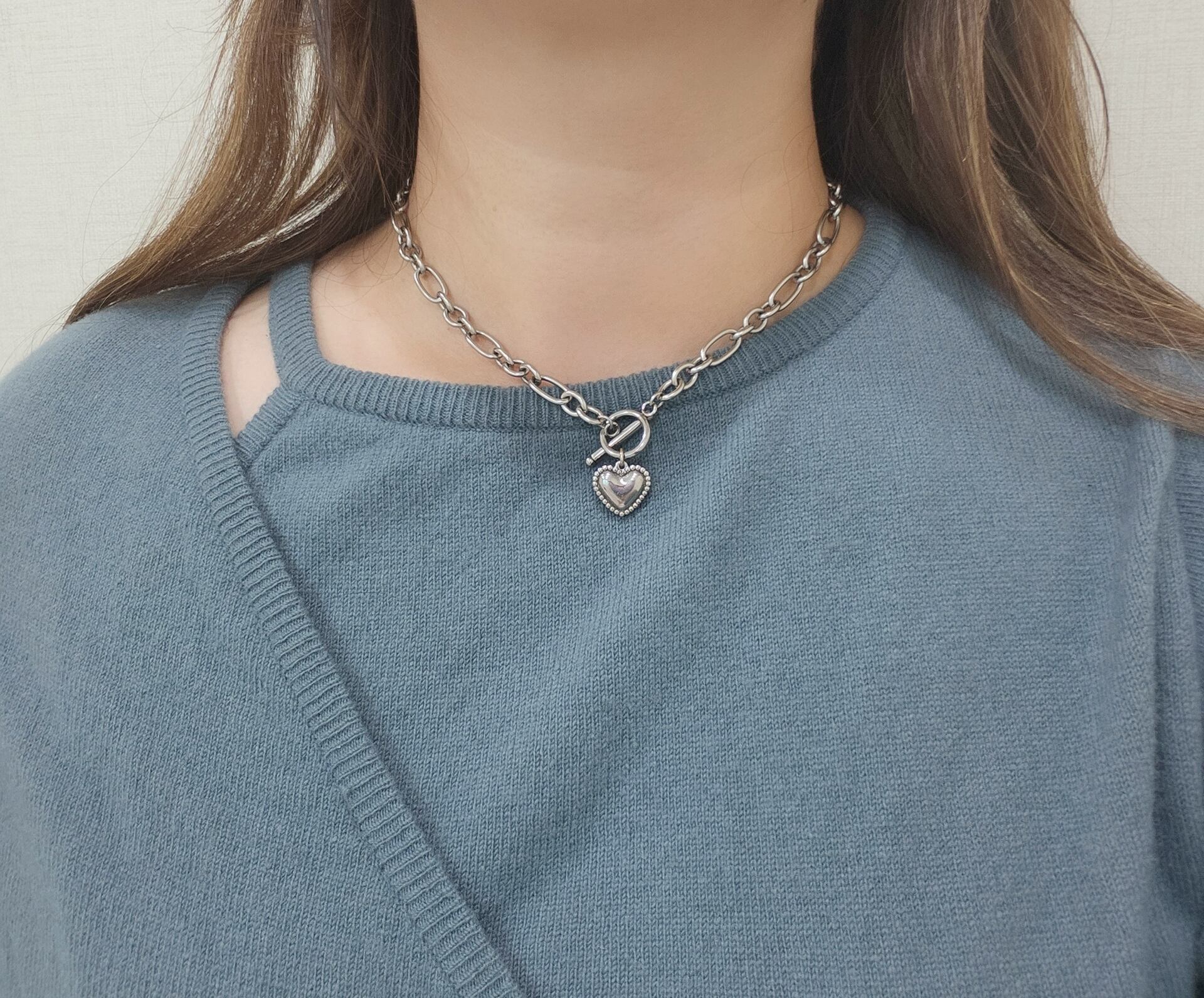 存在感のあるシルバーチェーンにハートアイテムをプラスして