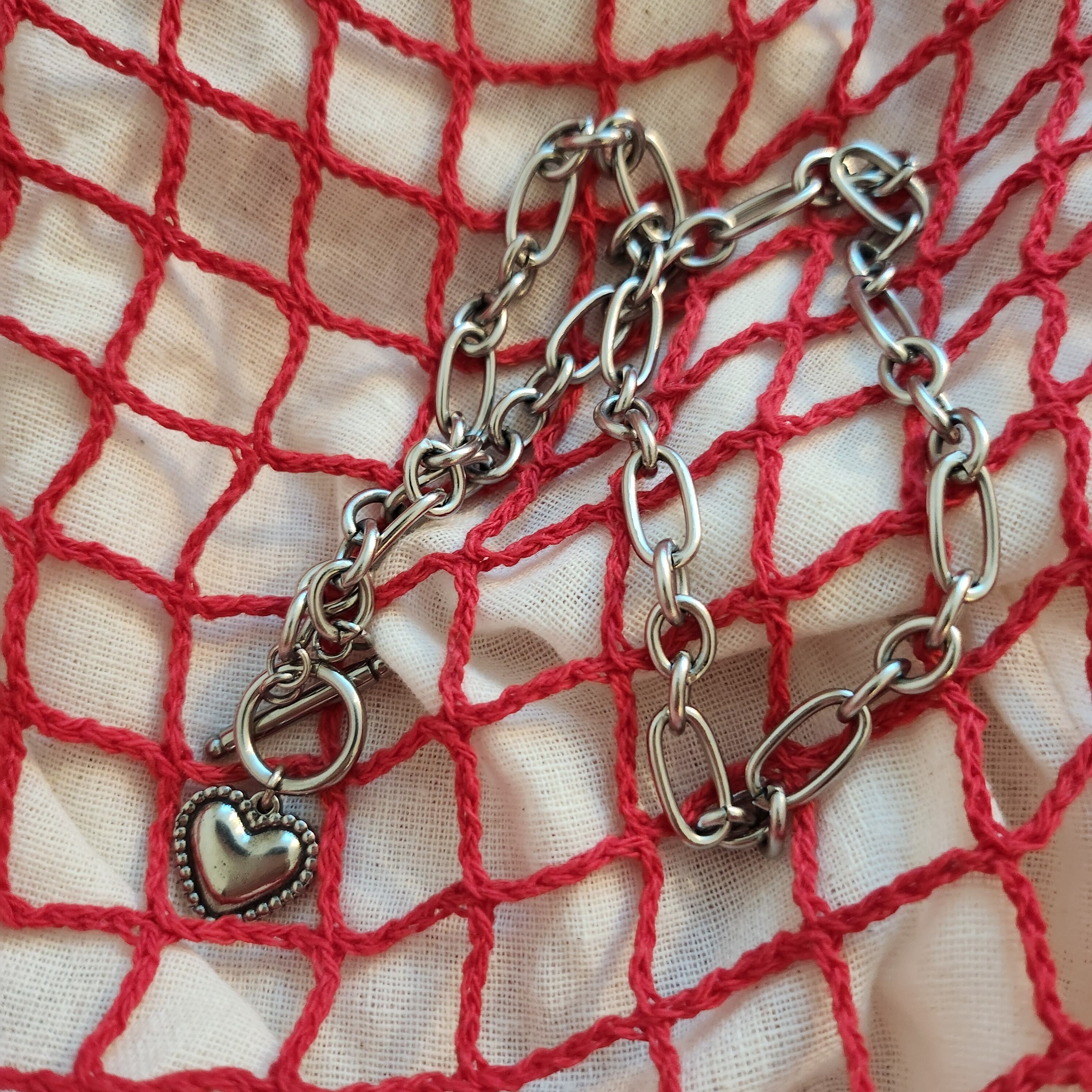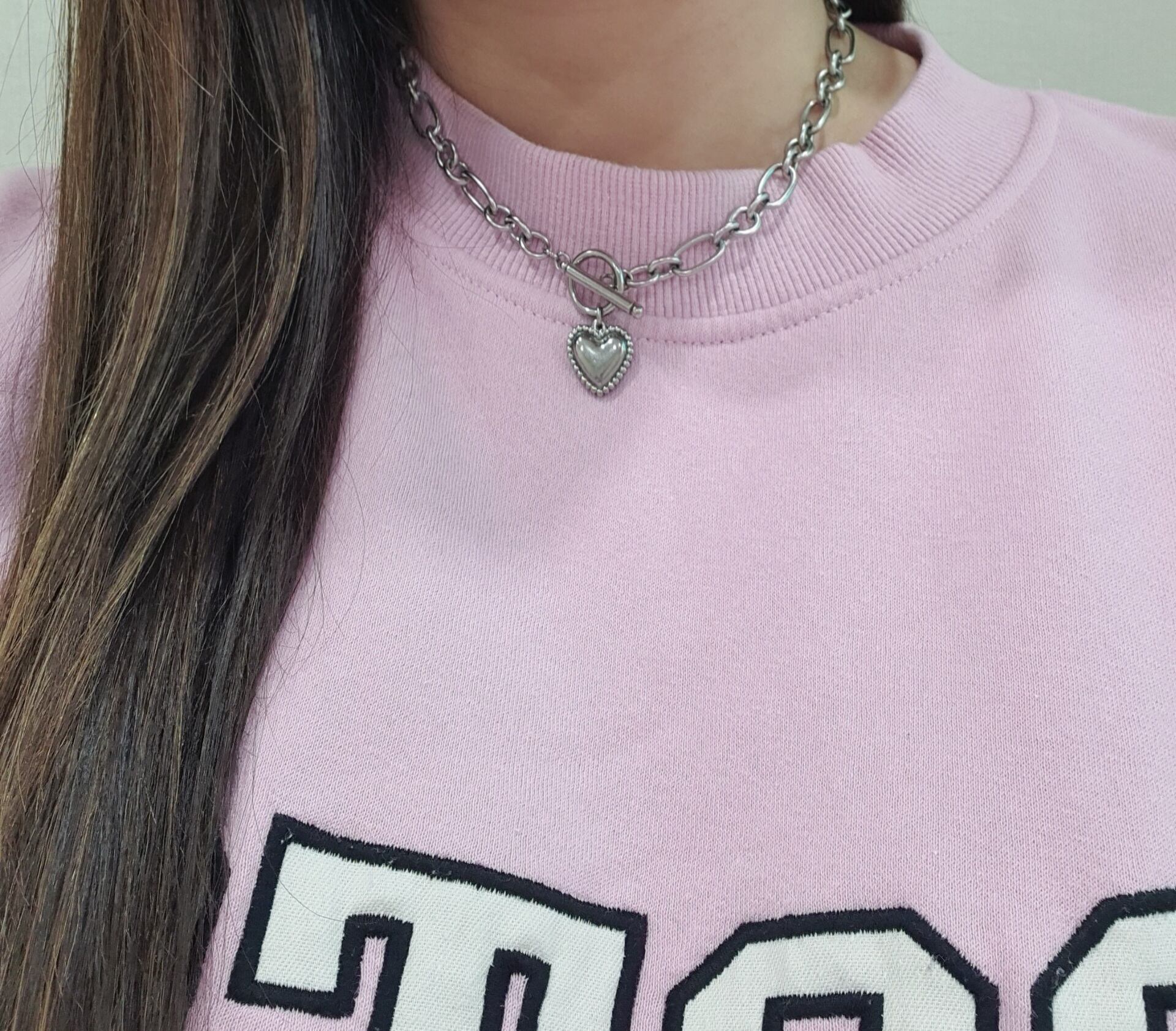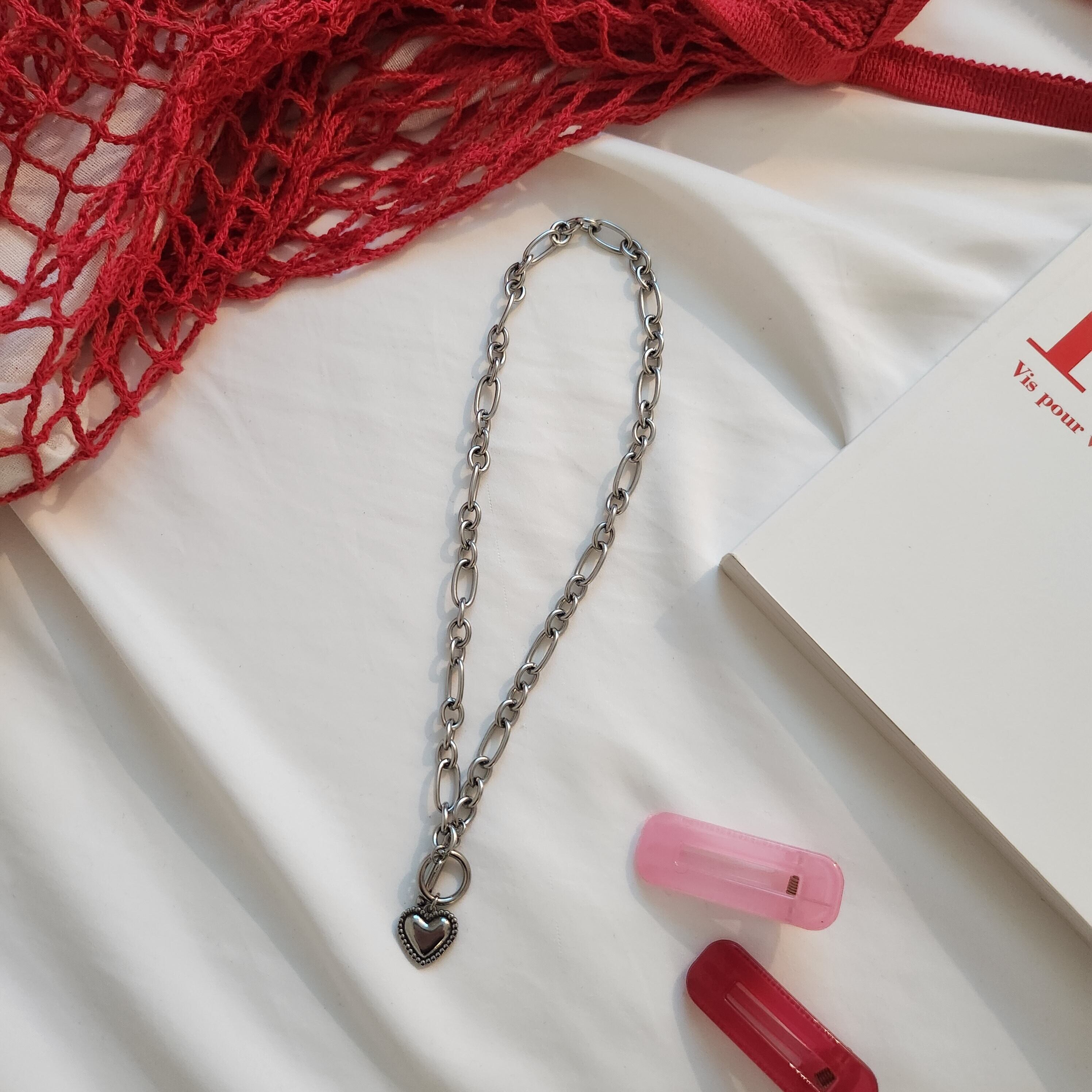 存在感のあるシルバーチェーンにハートアイテムをプラスして