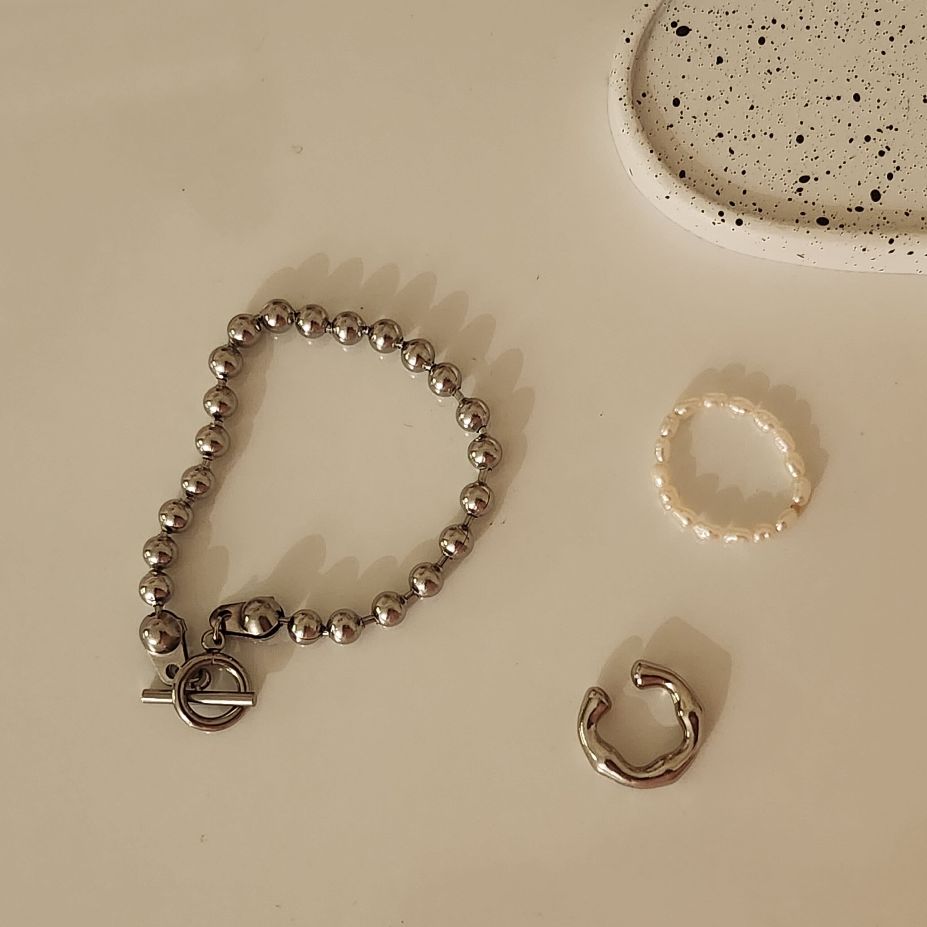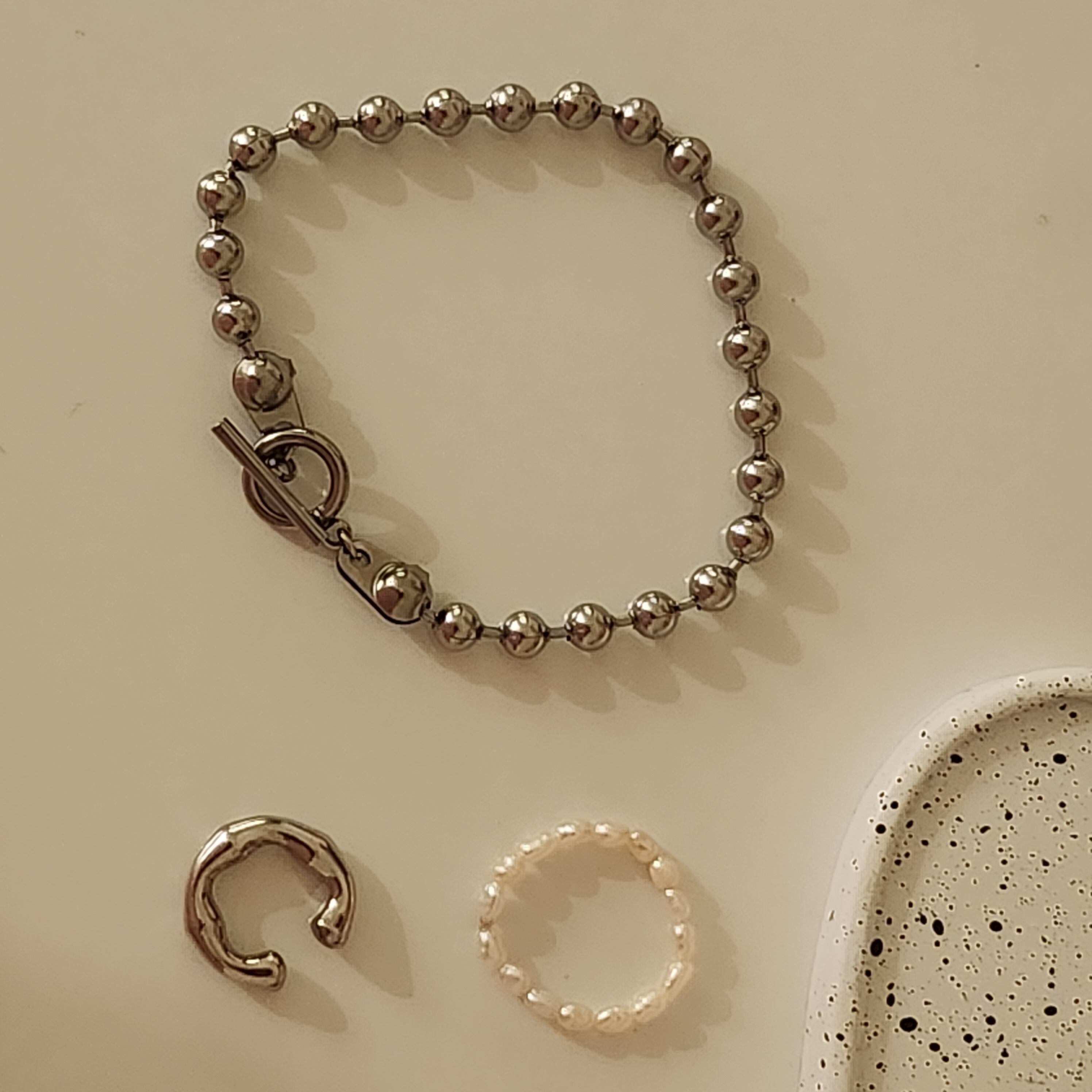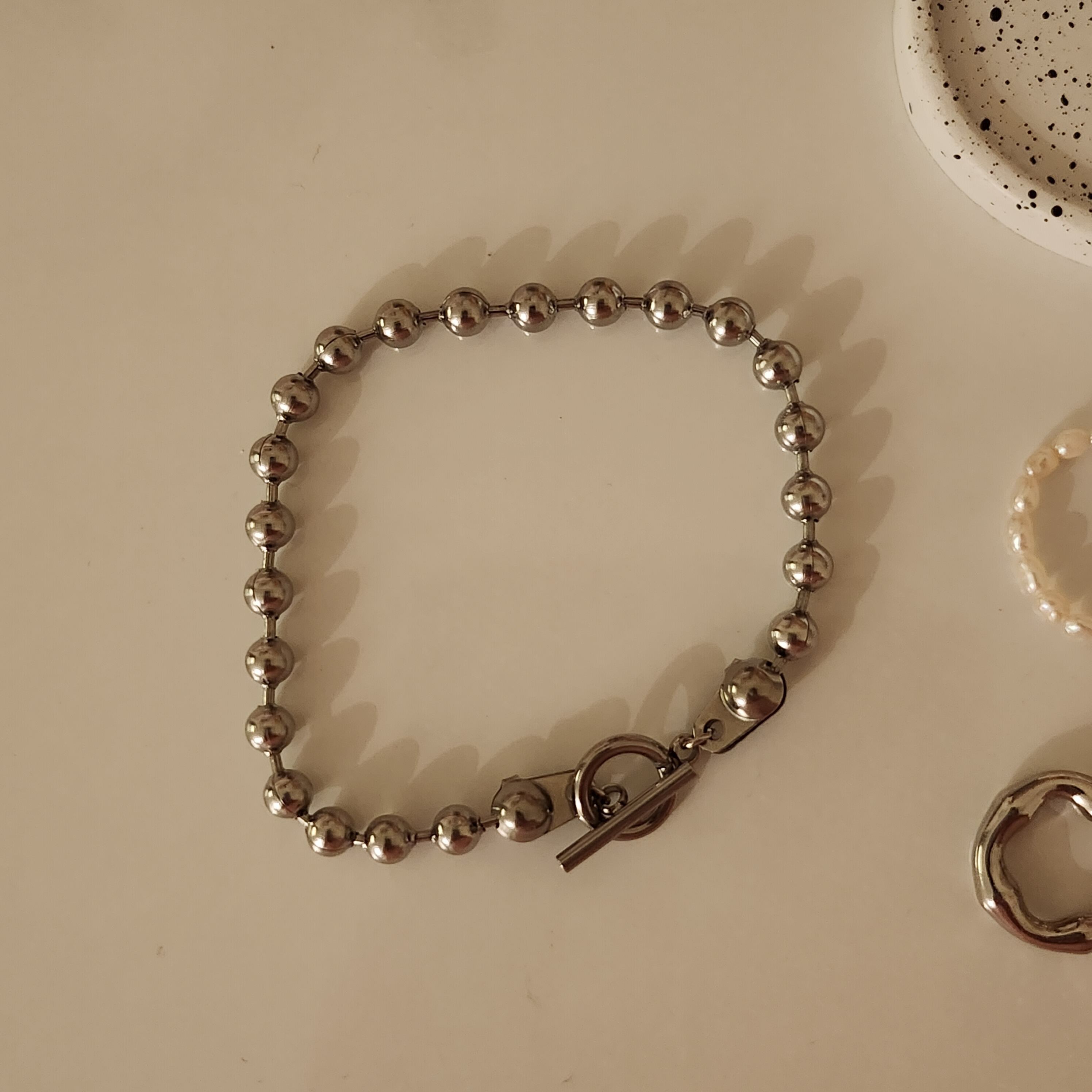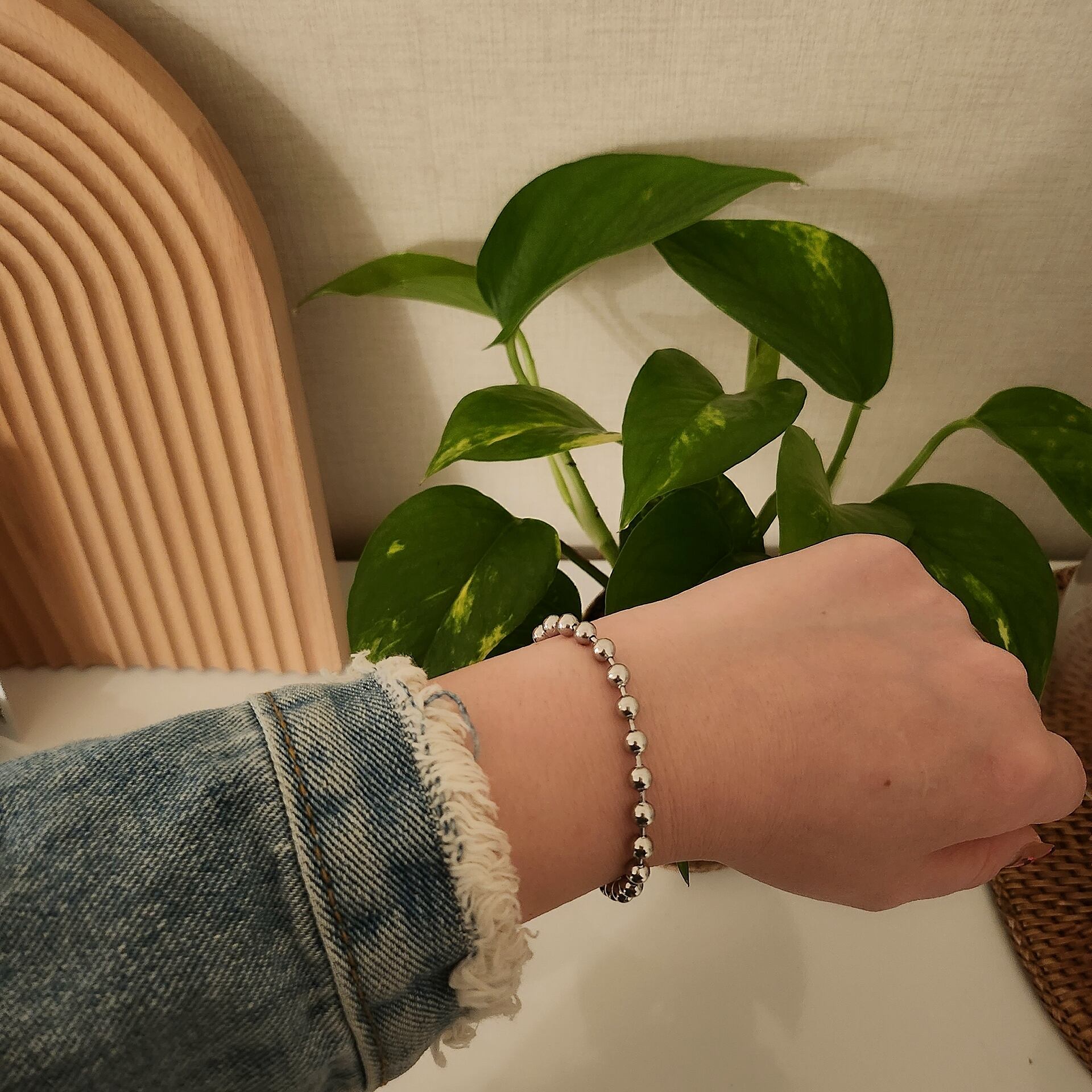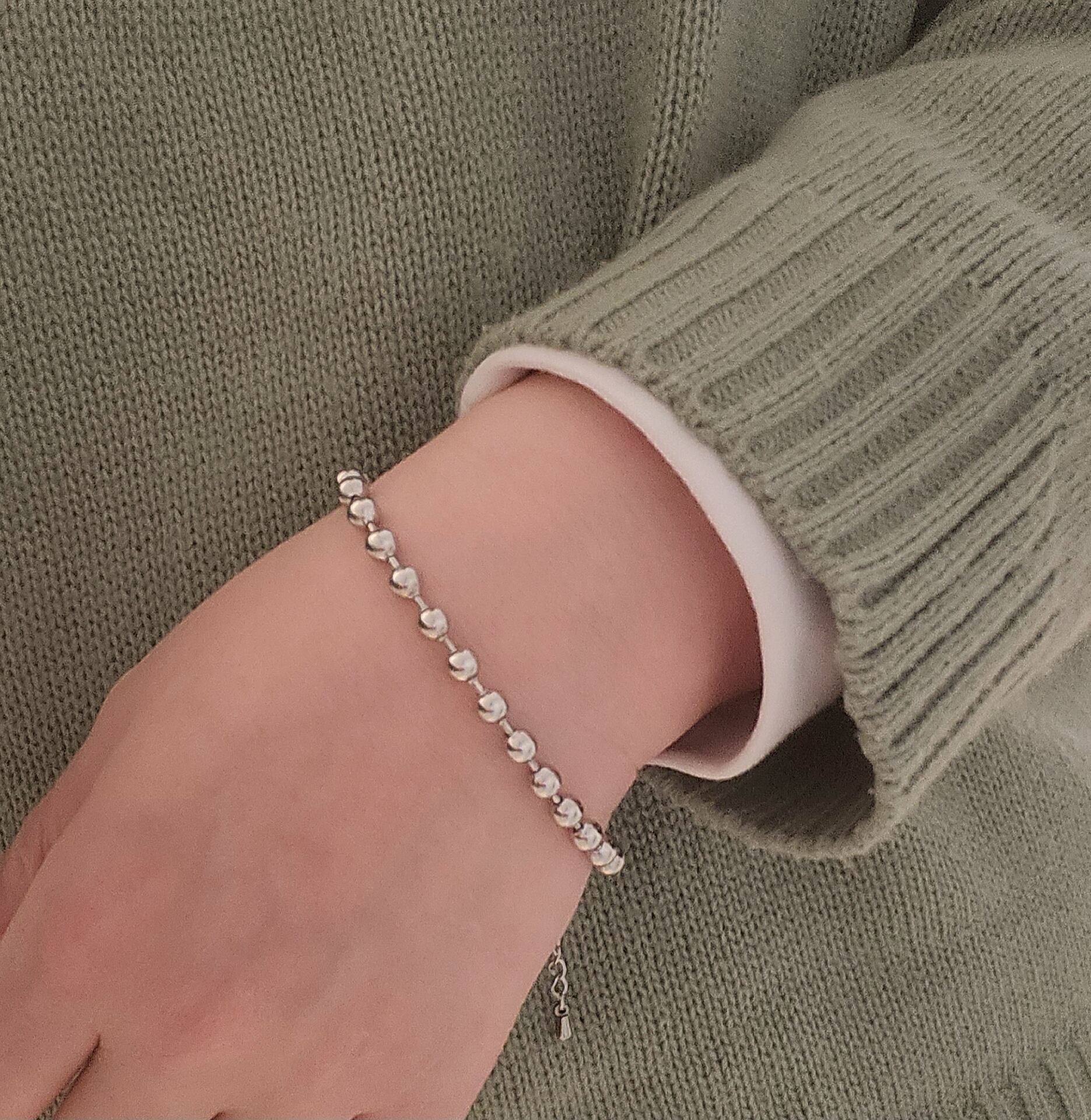 シンプルだけどポイントになるボールチェーンブレスレットです。