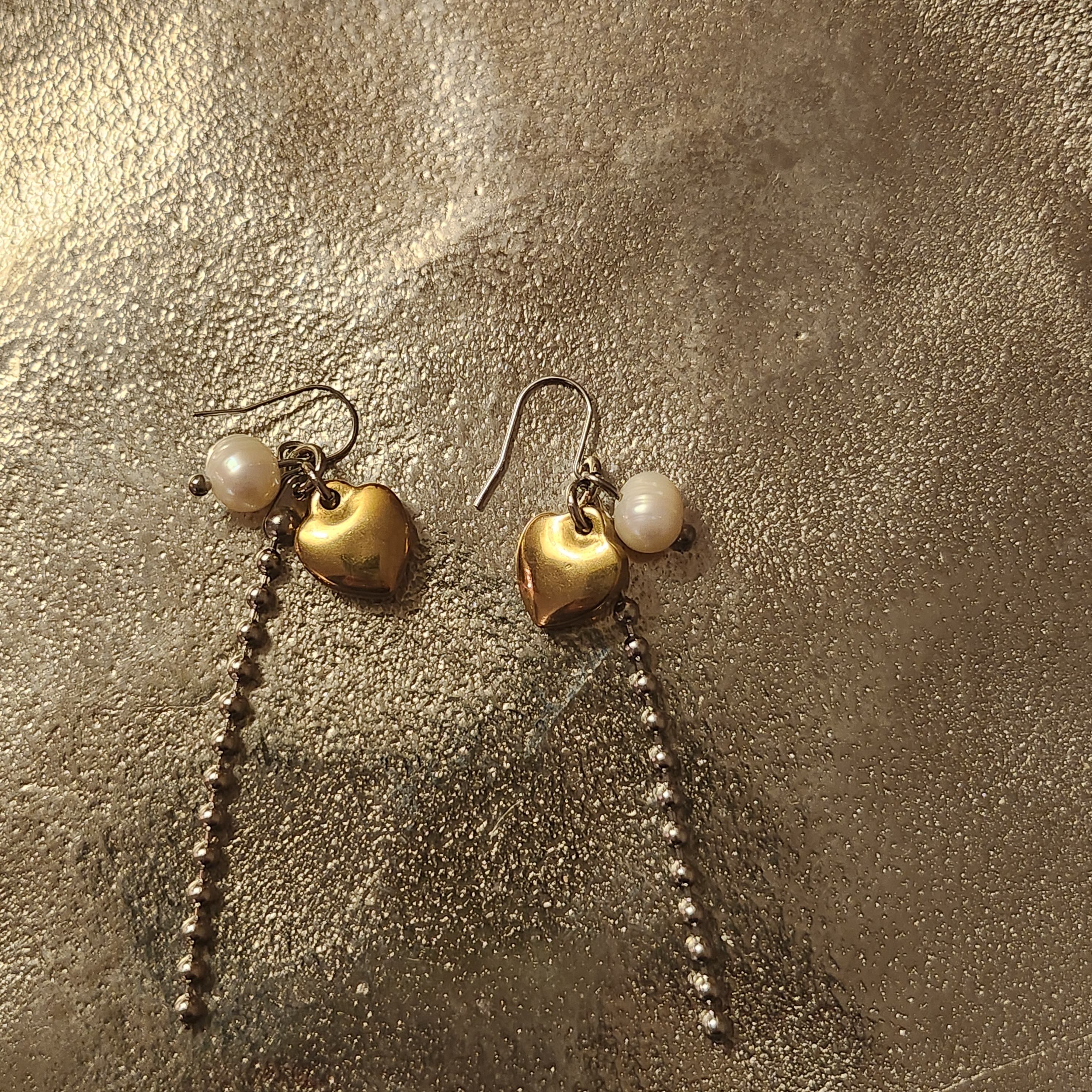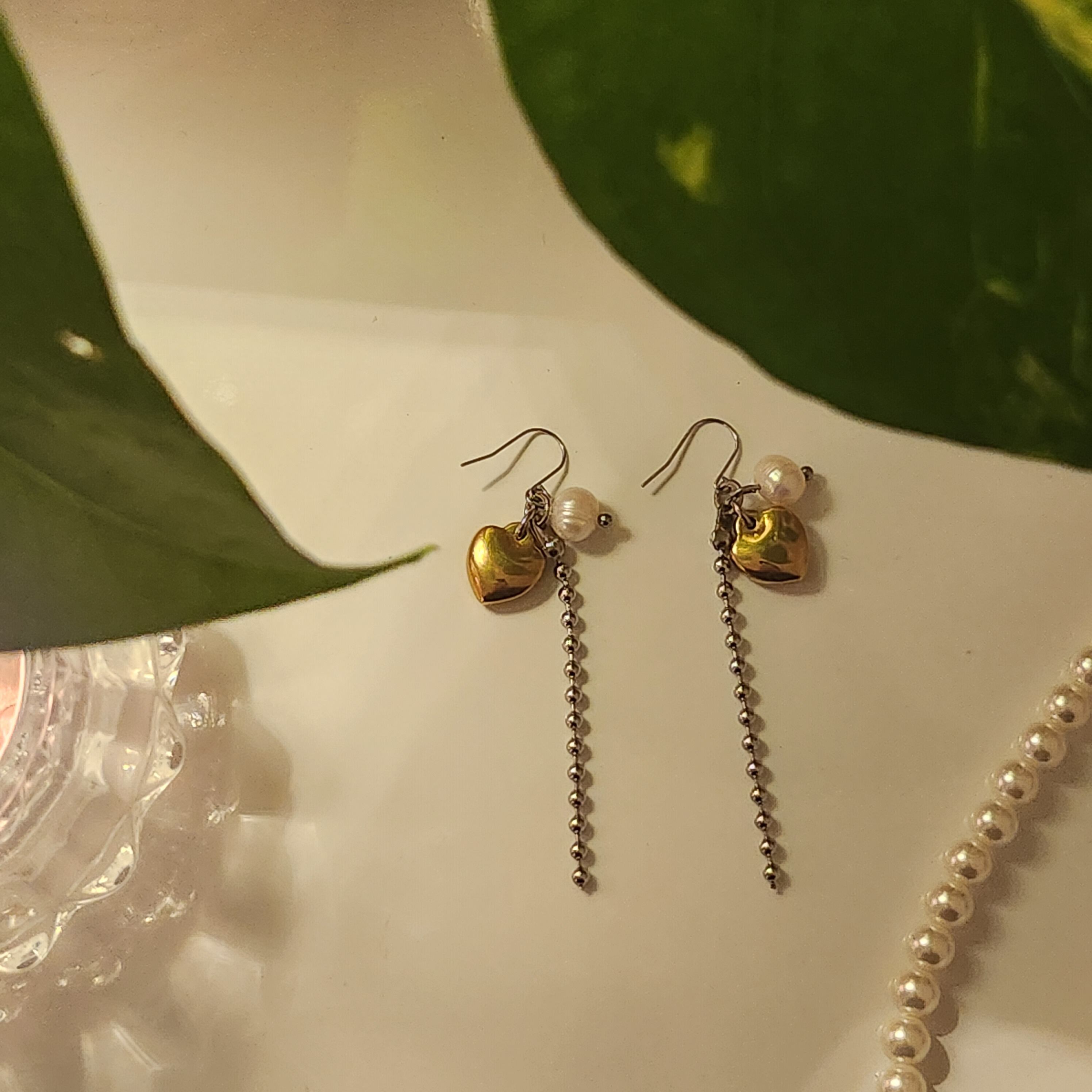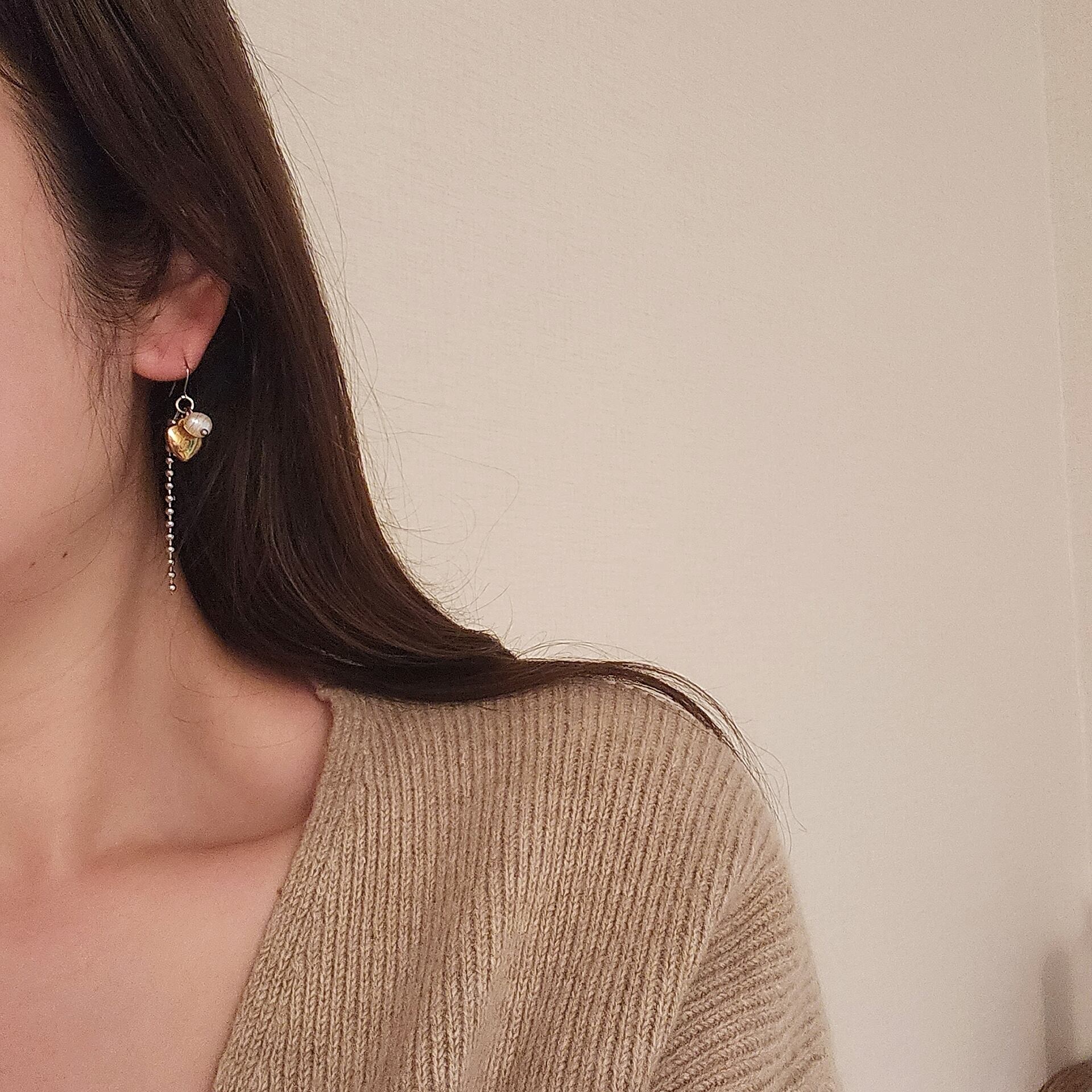 ゴールドハートモチーフ、淡水バロックパール、約2mmのボールチェーンが
