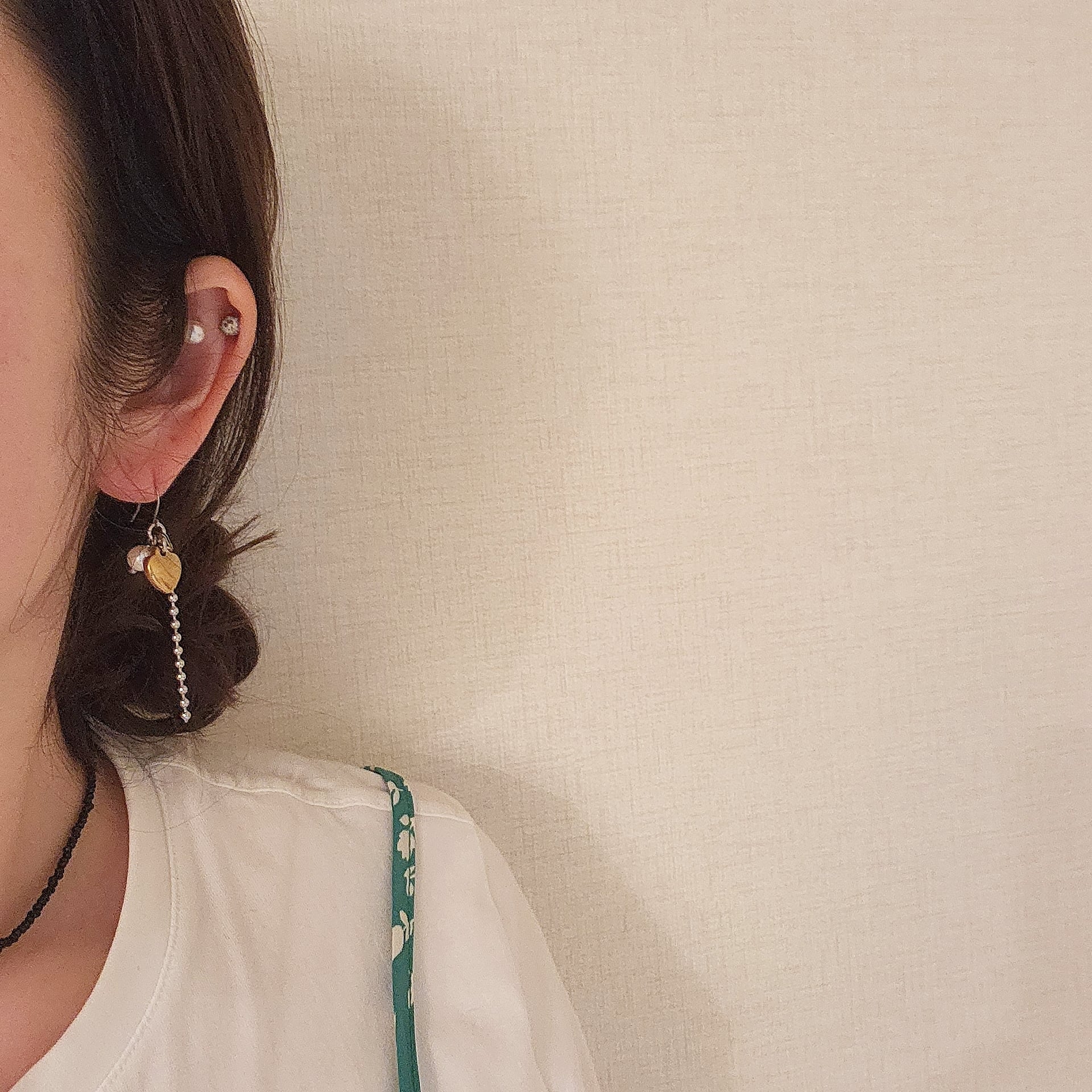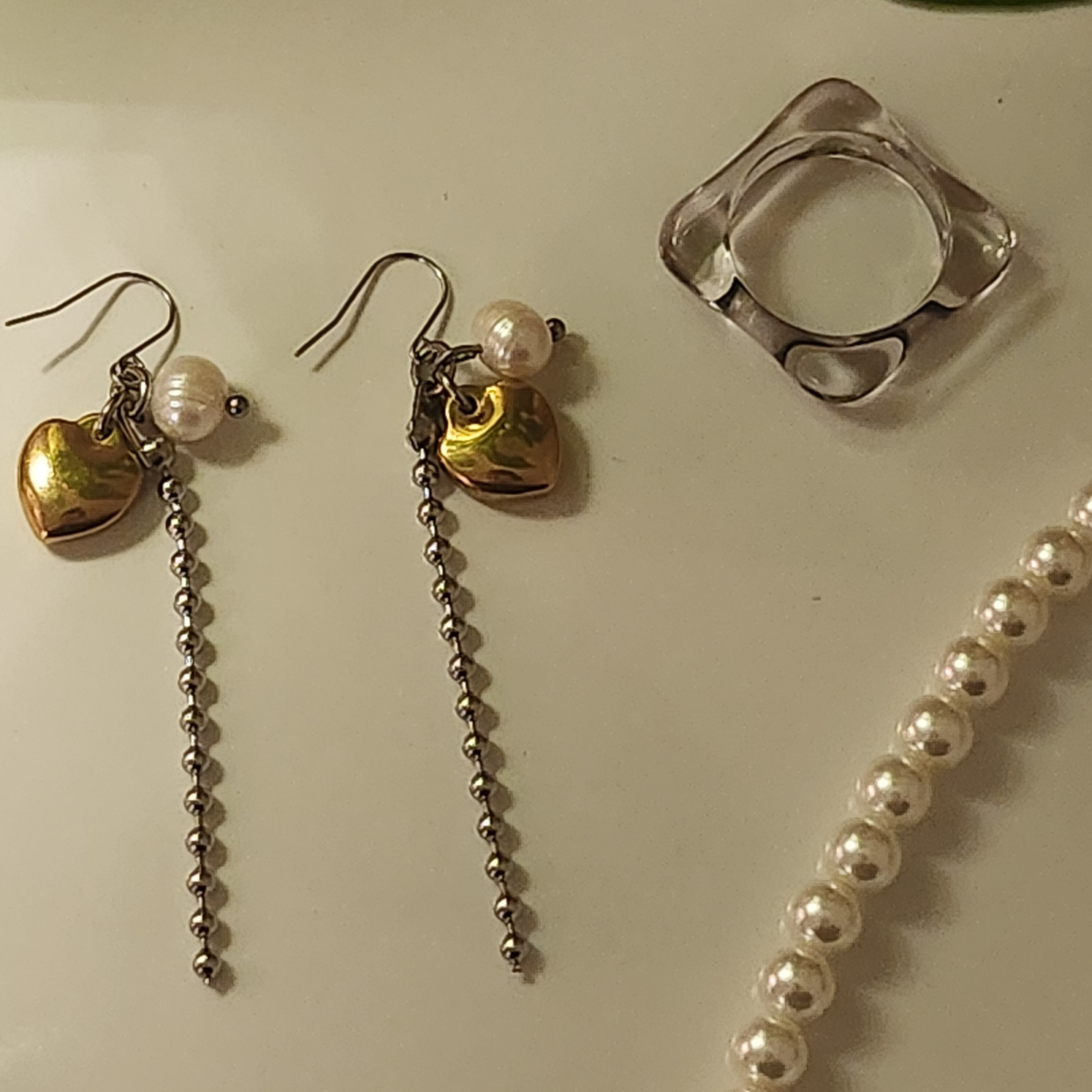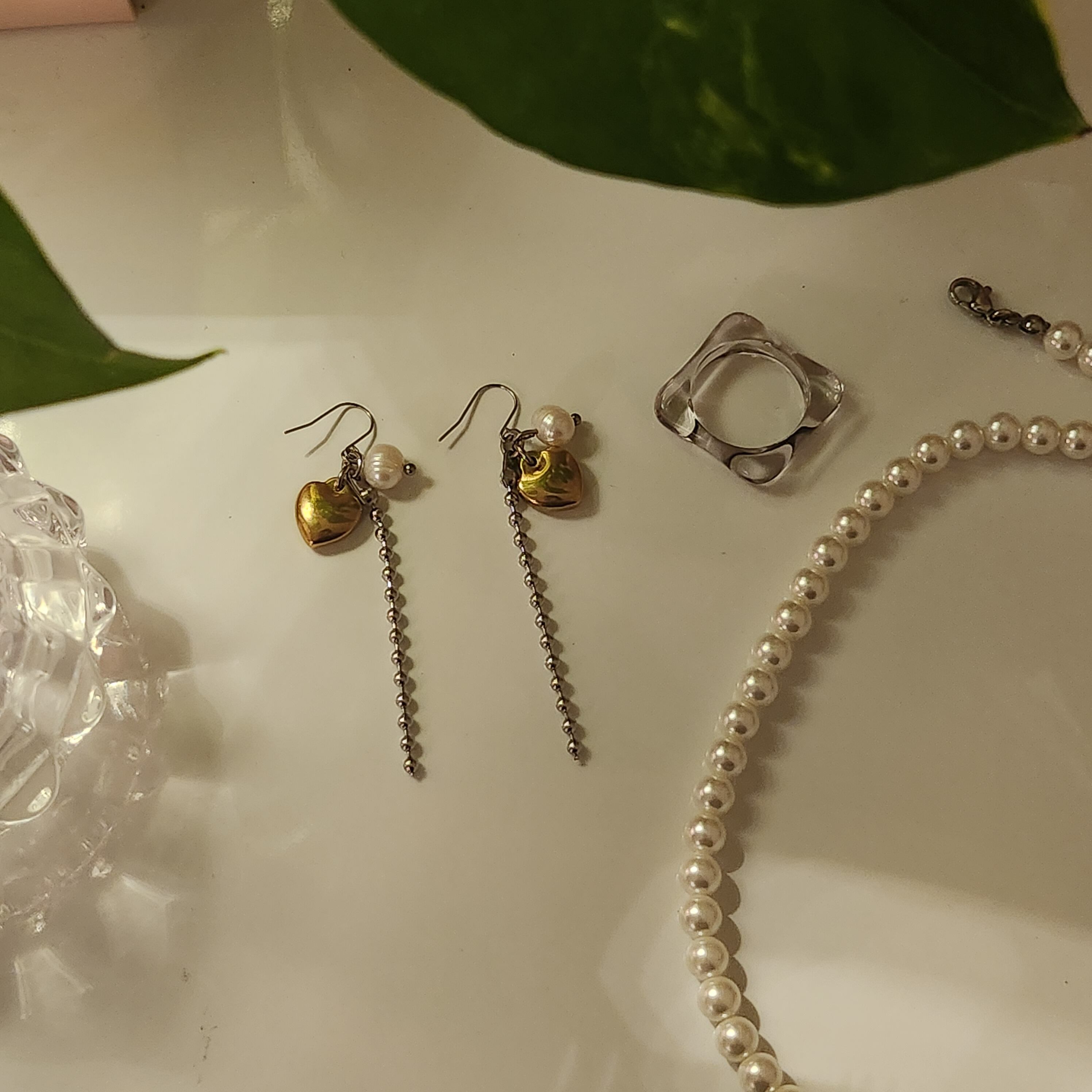 ゴールドハートモチーフ、淡水バロックパール、約2mmのボールチェーンが
