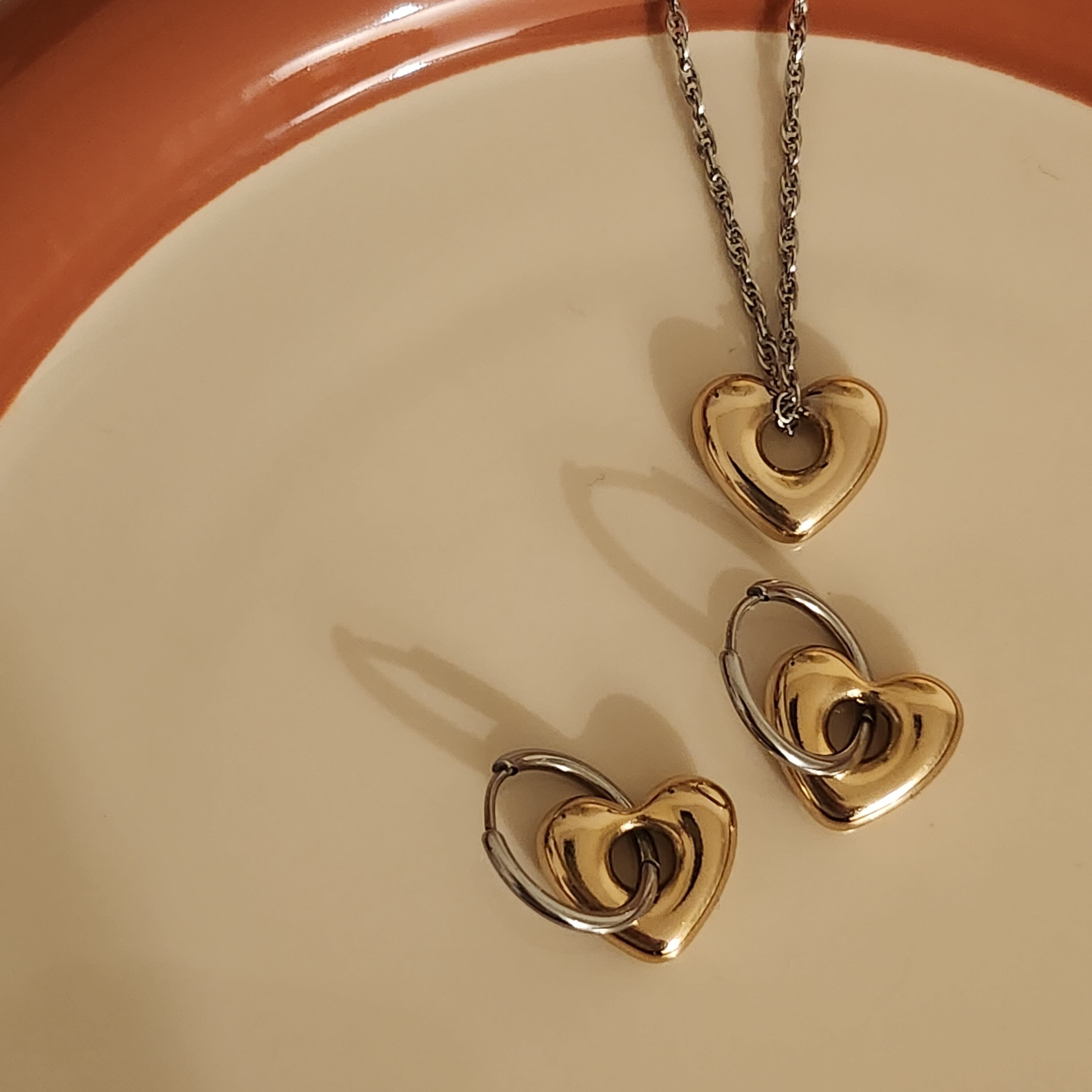 ピアス部分はシルバー、ぷっくりとしたハートモチーフはゴールドなので、シルバー好きにもゴールド好きにもGOOD!!