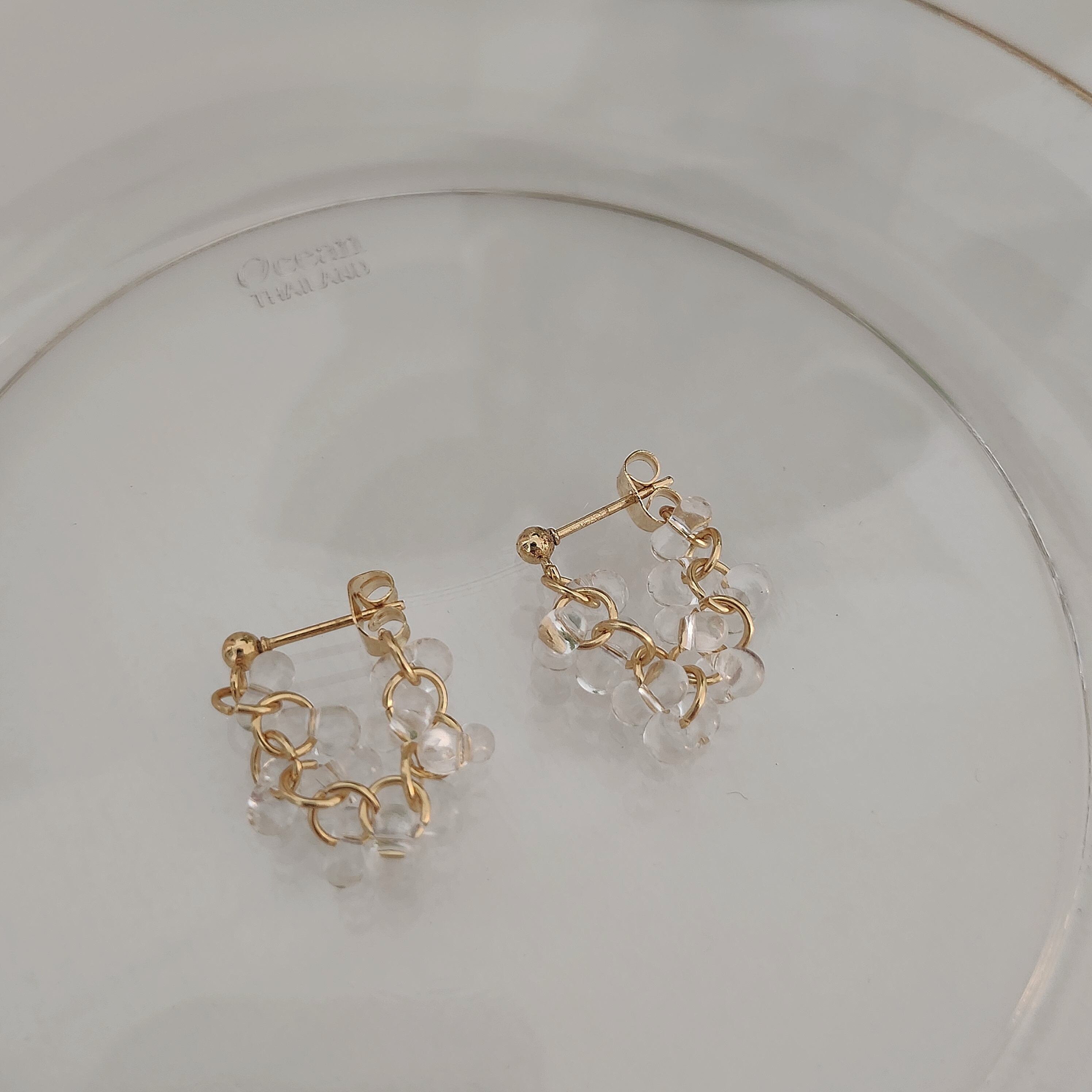 こじんまりとしたシンプルなデザインですが、透明感があってみずみずしいビーズたちがきらきらと輝いて存在感を与えてくれます♡