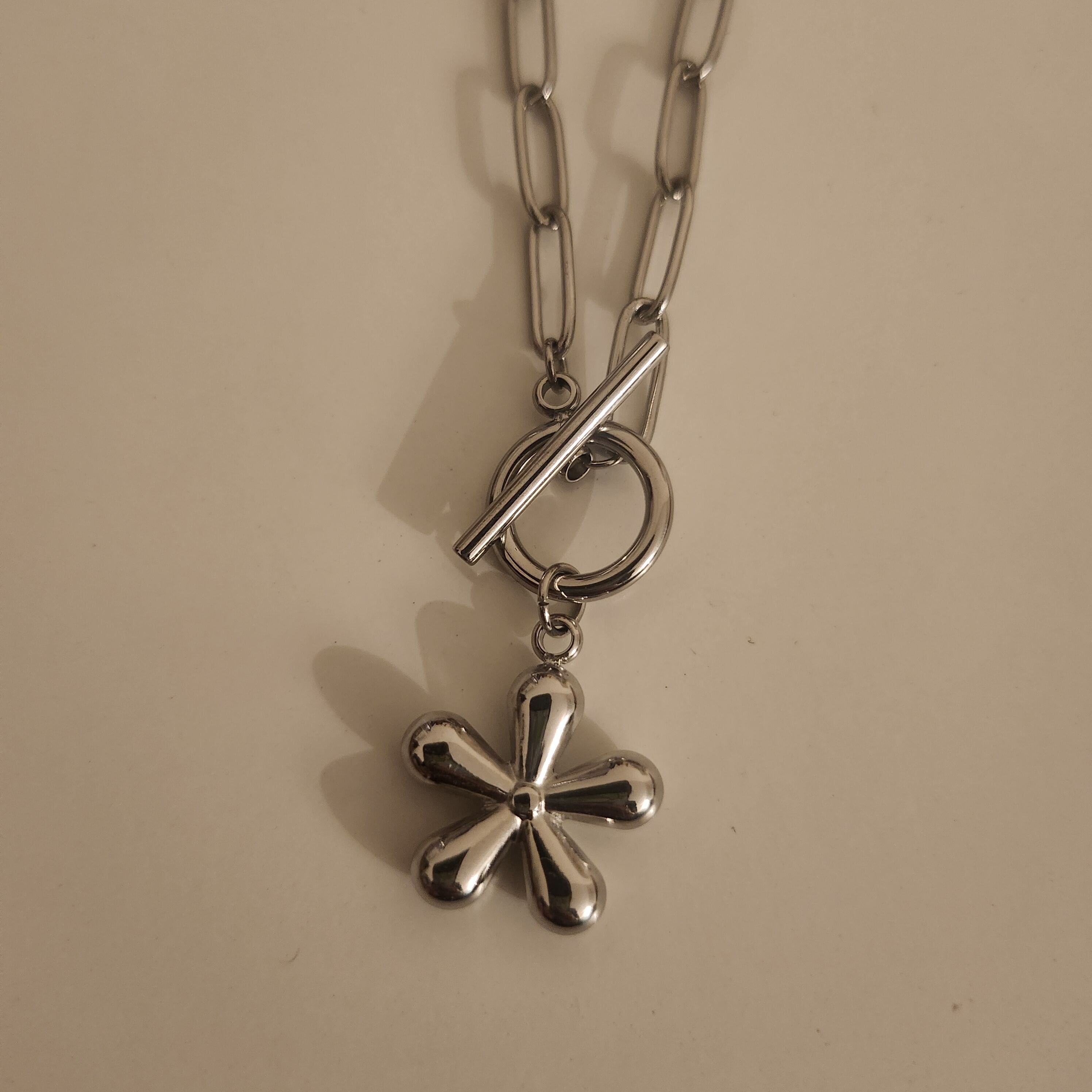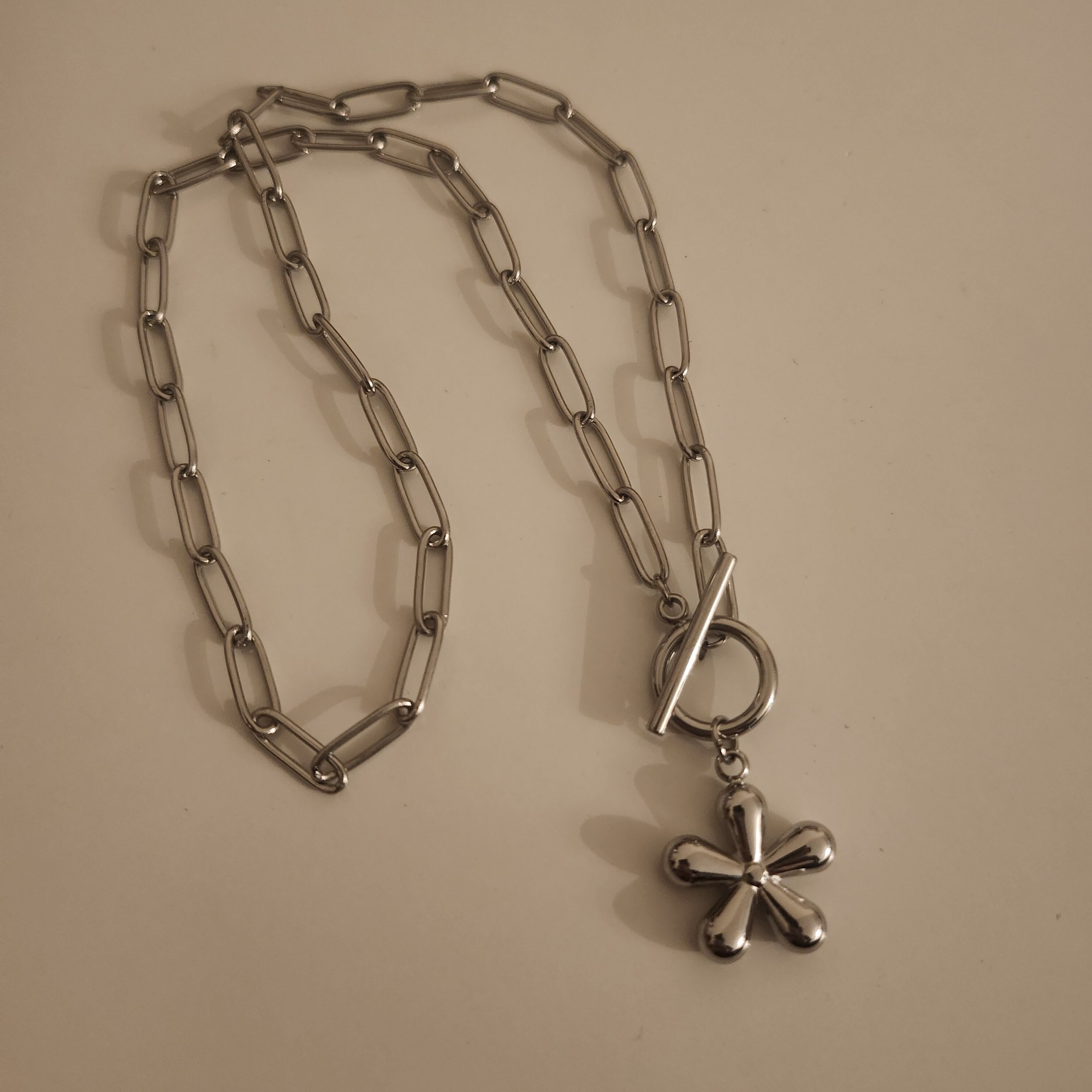 ポップなフラワーモチーフがおしゃれなネックレス。