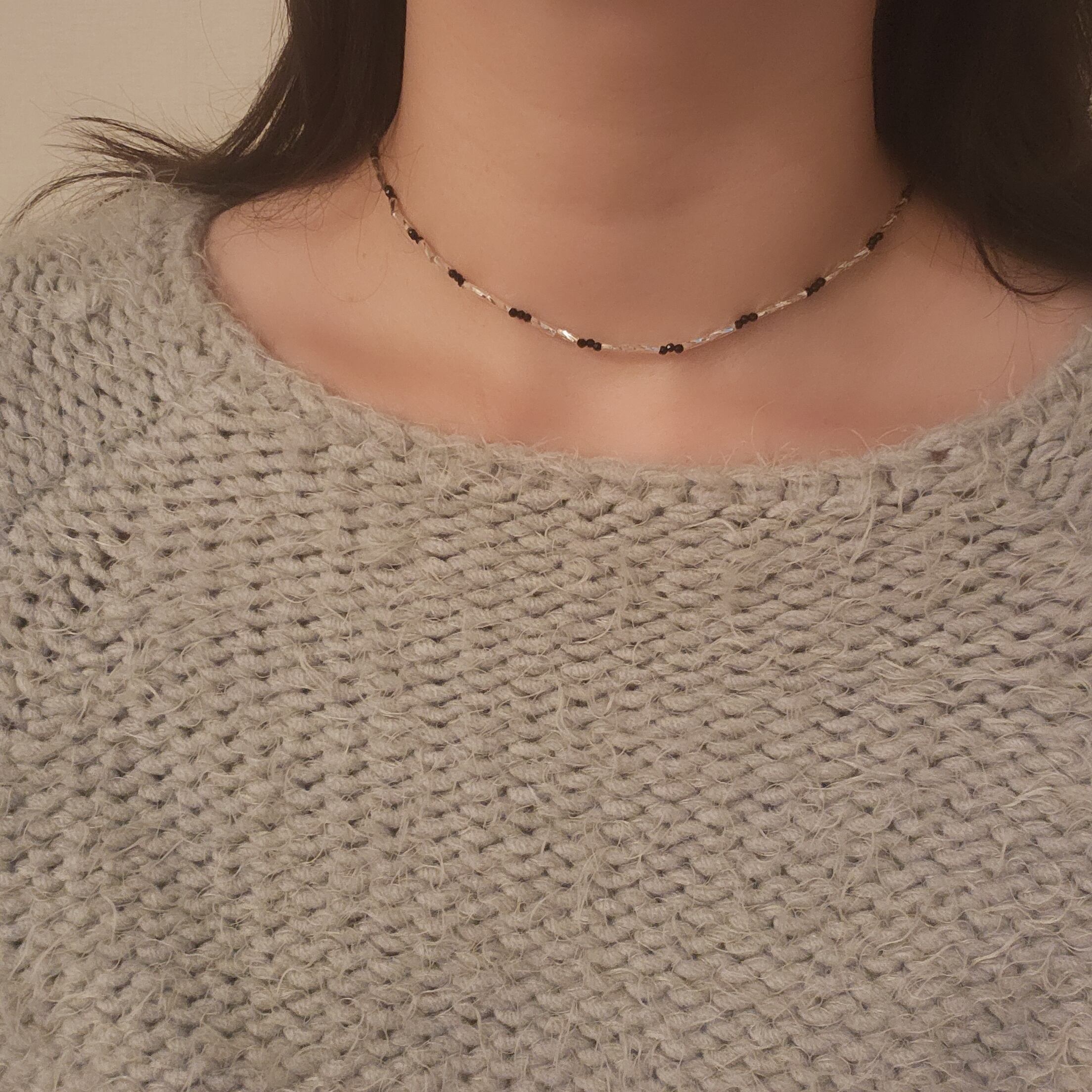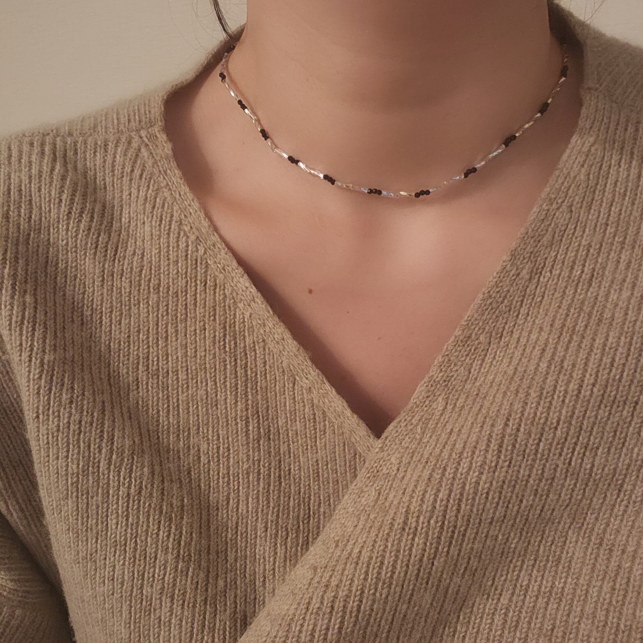 華奢なビーズたちがきらきらと輝きながらさらっとおしゃれ感を出してくれるチョーカー風ネックレス。